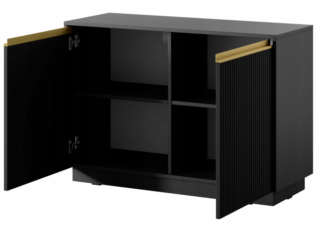 Kolekcja ROYAL to propozycja dla osób, które szukają mebli łączących nowoczesny minimalizm z ponadczasowym stylem i subtelnym akcentem dekoracyjnym. Charakterystyczne, pionowo ryflowane fronty osadzone w prostych korpusach tworzą spójną i wyrazistą formę, która doskonale prezentuje się zarówno w salonie, jak i w jadalni czy sypialni. Całość wieńczy delikatny złoty detal w postaci poziomej listwy, który dodaje meblom klasy i elegancji bez przesadnej dekoracyjności.