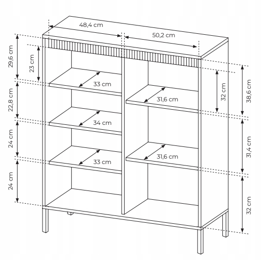 Konstrukcja oparta na wysokiej jakości płycie laminowanej i MDF zapewnia trwałość i estetykę przez długi czas. Krawędzie zostały zabezpieczone obrzeżem ABS w kolorze płyty, a szuflady wyposażono w prowadnice kulkowe z pełnym wysuwem, co zapewnia łatwy dostęp do całej zawartości. To mebel, który sprawdzi się zarówno w salonie, jak i sypialni czy przedpokoju – wszędzie tam, gdzie potrzeba elegancji i funkcjonalności w jednym.