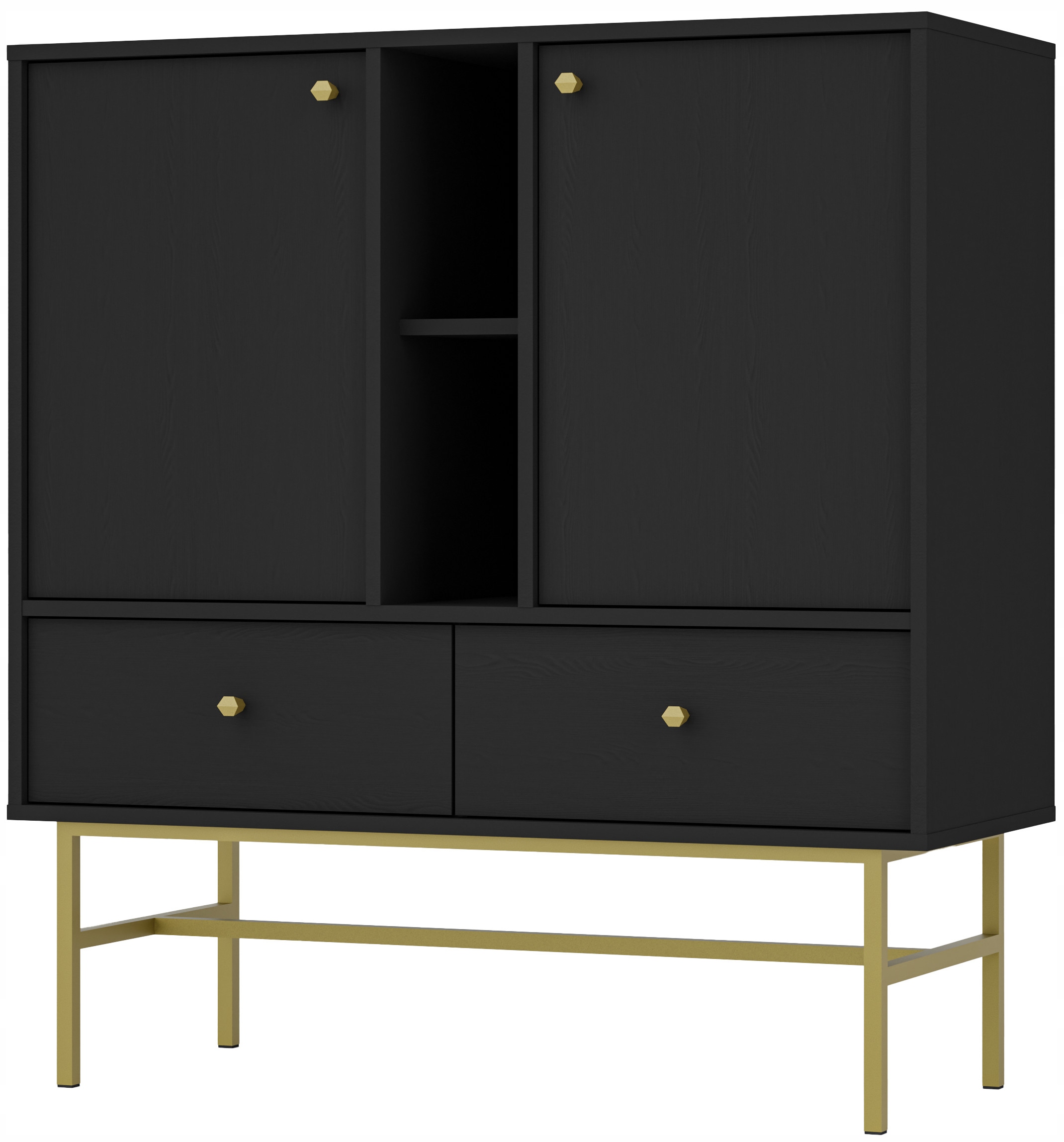 Komoda AVILA o szerokości 100 cm to doskonałe połączenie funkcjonalności i stylu. Wyposażona w dwoje drzwi, dwie praktyczne szuflady oraz otwartą półkę w centrum, komoda oferuje wiele opcji przechowywania, idealnie spełniając potrzeby organizacyjne każdego wnętrza. Środkowa półka pozwala na ekspozycję dekoracji lub przechowywanie podręcznych przedmiotów, co nadaje kompozycji przestrzeni wyjątkowego charakteru.