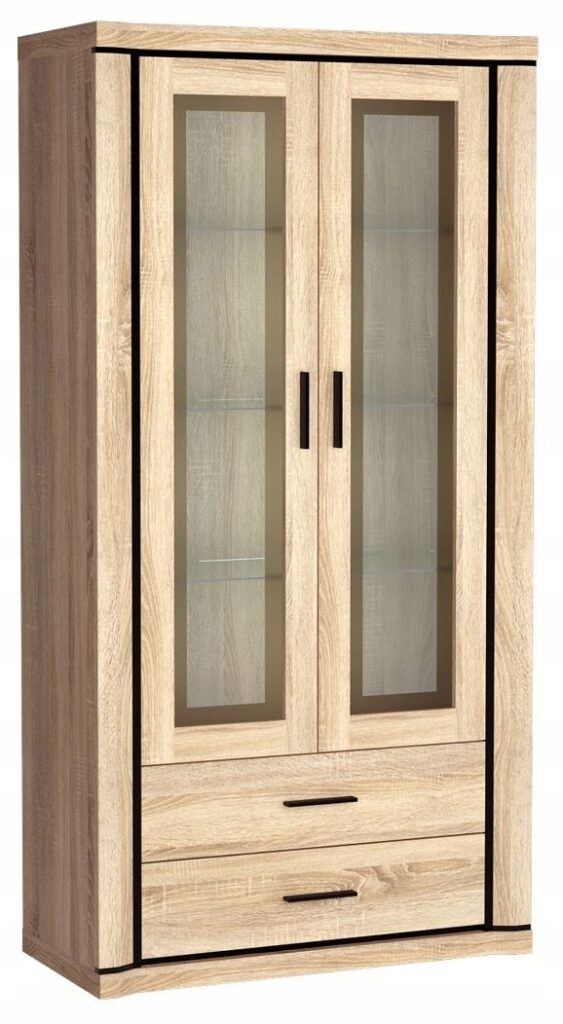 Czarny matowy korpus komody, uzupełniony złotymi metalowymi nóżkami i uchwytami, nadaje całości wyjątkowej elegancji i luksusowego stylu. Dzięki metalowym nóżkom o wysokości 13,5 cm komoda jest stabilna i łatwa do utrzymania w czystości, co sprawia, że jest praktyczna i funkcjonalna w codziennym użytkowaniu. Wykończenia z obrzeżem ABS oraz fronty imitujące strukturę drewna podkreślają jej wyjątkowy wygląd i wytrzymałość, zapewniając trwałość na lata.