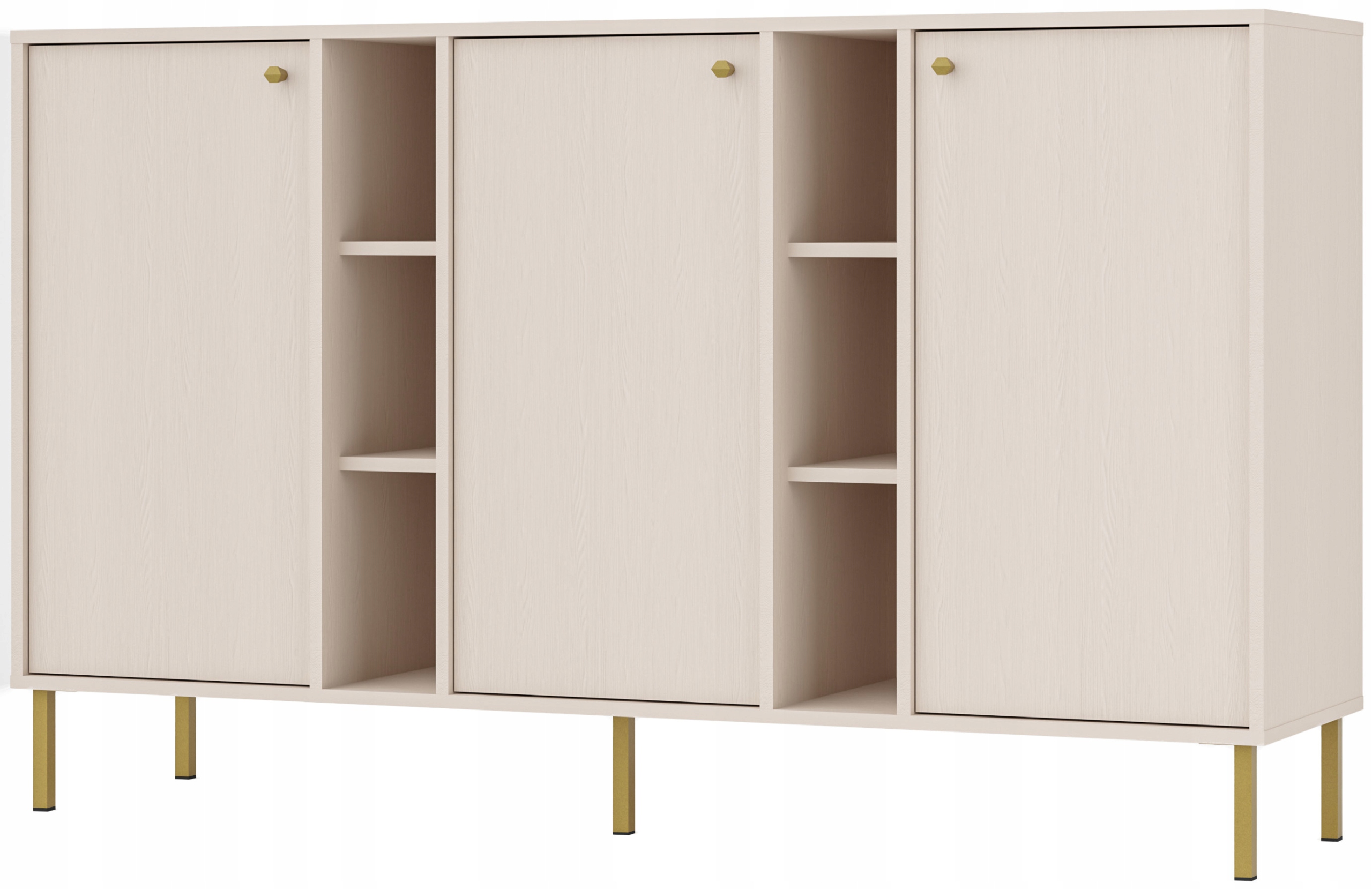 Komoda z kolekcji AVILA to elegancki i funkcjonalny mebel, idealny do salonu, sypialni czy jadalni. Wyposażona w trzy drzwiczki z przestronnymi półkami, rozmieszczonymi pomiędzy drzwiami, komoda oferuje dużą ilość miejsca do przechowywania, pomagając utrzymać porządek w każdej przestrzeni. Jej klasyczny beż piaskowy kolor wprowadza do wnętrza ciepło i harmonię, doskonale współgrając z różnorodnymi aranżacjami.