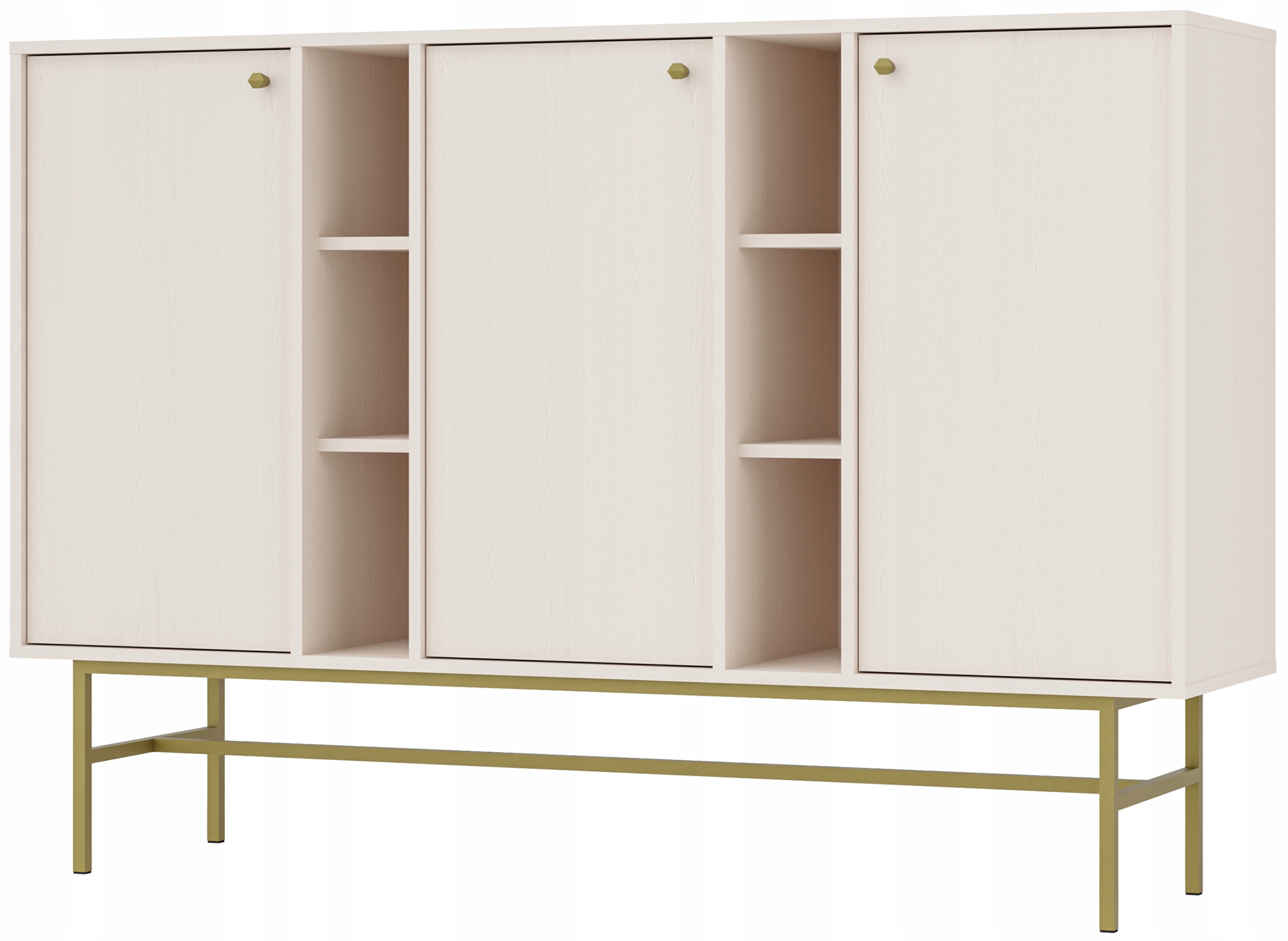 Komoda z kolekcji AVILA to pojemna i stylowa propozycja do nowoczesnych wnętrz, łącząca funkcjonalność i elegancję. Wyposażona w trzy drzwi, a pomiędzy nimi znajdują się otwarte półki, które oferują dodatkową przestrzeń ekspozycyjną – idealną na dekoracje, książki lub inne elementy, które chcesz mieć pod ręką.