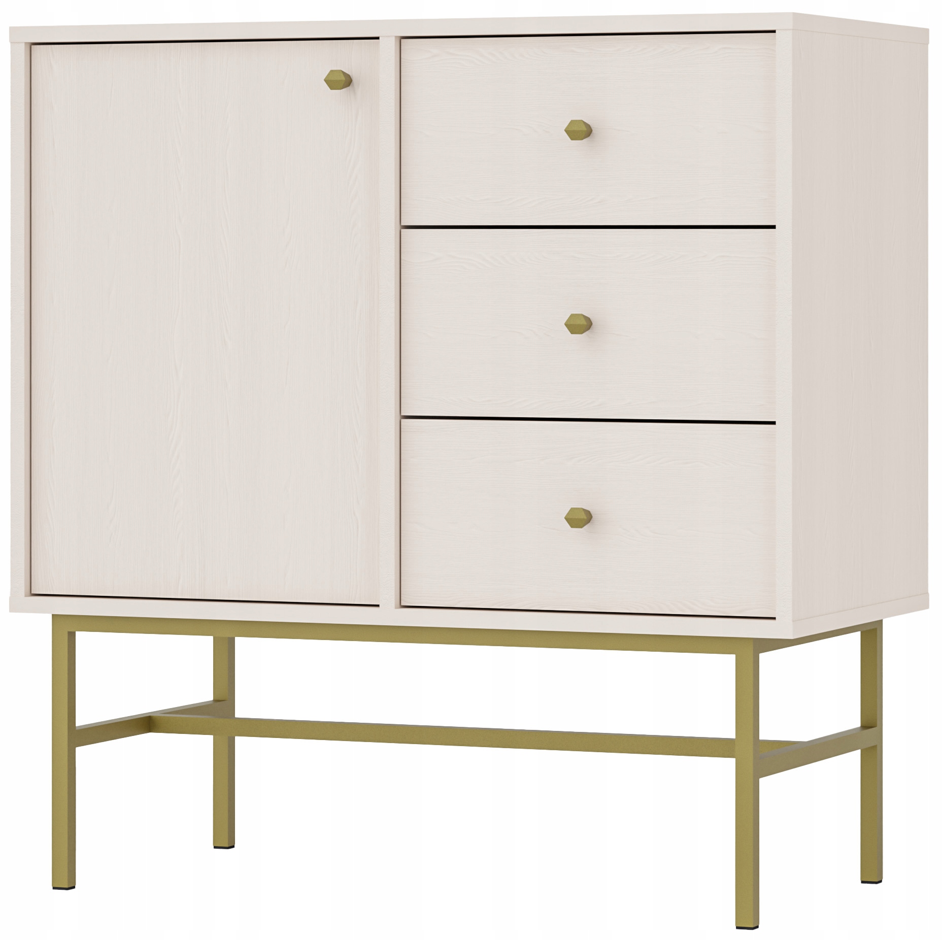Komoda z kolekcji AVILA to elegancja i funkcjonalność zamknięta w stylowej, beżowej formie. Doskonała do salonu, sypialni czy gabinetu, wnosi ciepło i harmonię dzięki swojej piaskowej kolorystyce. Wykonana z wysokiej jakości materiałów, komoda posiada jedne drzwi oraz trzy praktyczne szuflady, które zapewniają łatwy dostęp do przechowywanych przedmiotów, utrzymując wnętrze w porządku.