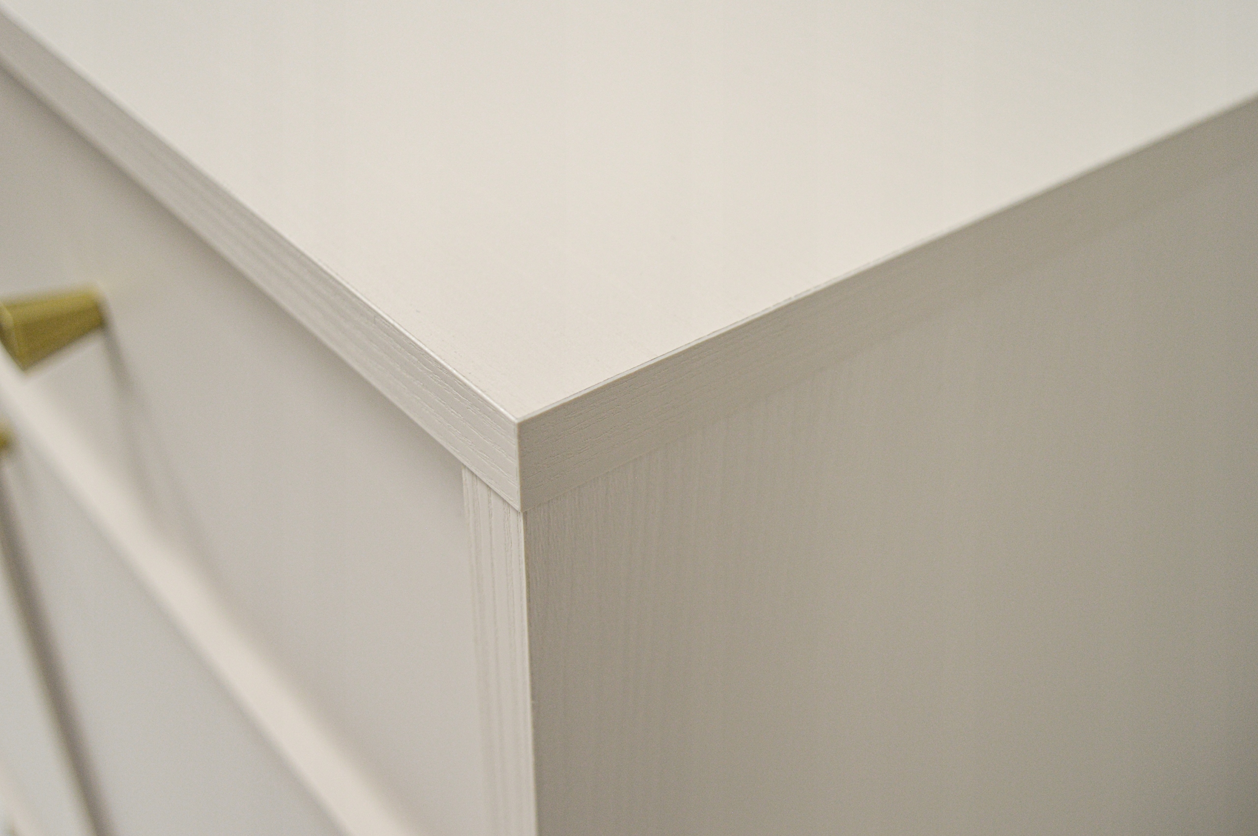 Każdy detal tej komody został starannie zaprojektowany – złote metalowe uchwyty i solidne metalowe nóżki nadają jej nowoczesny, luksusowy charakter, a jednocześnie gwarantują stabilność. Komoda AVILA wyróżnia się nie tylko estetyką, ale również trwałością – wykończenie obrzeżem ABS oraz struktura drewna na frontach dodają jej wyjątkowego uroku.