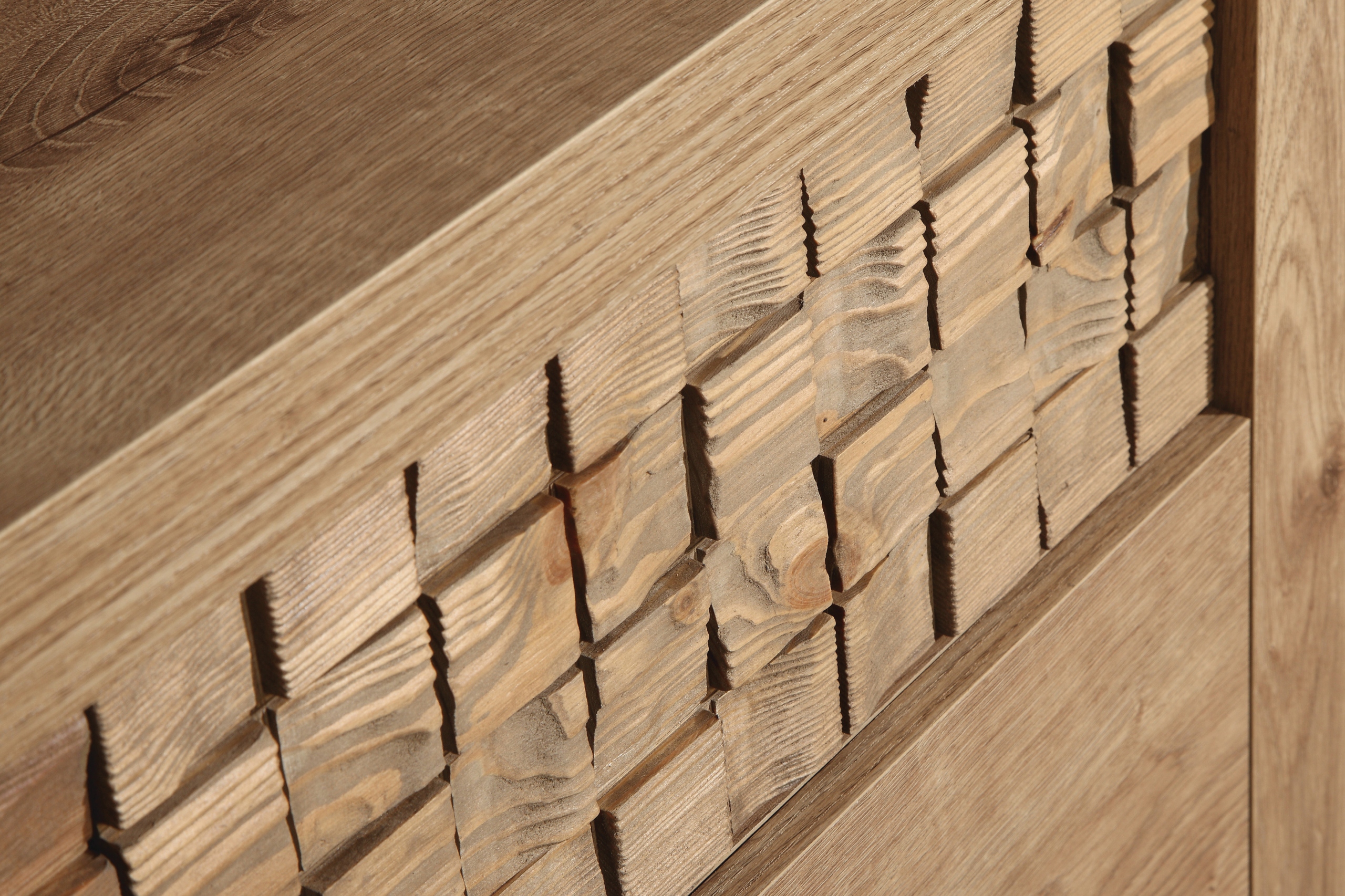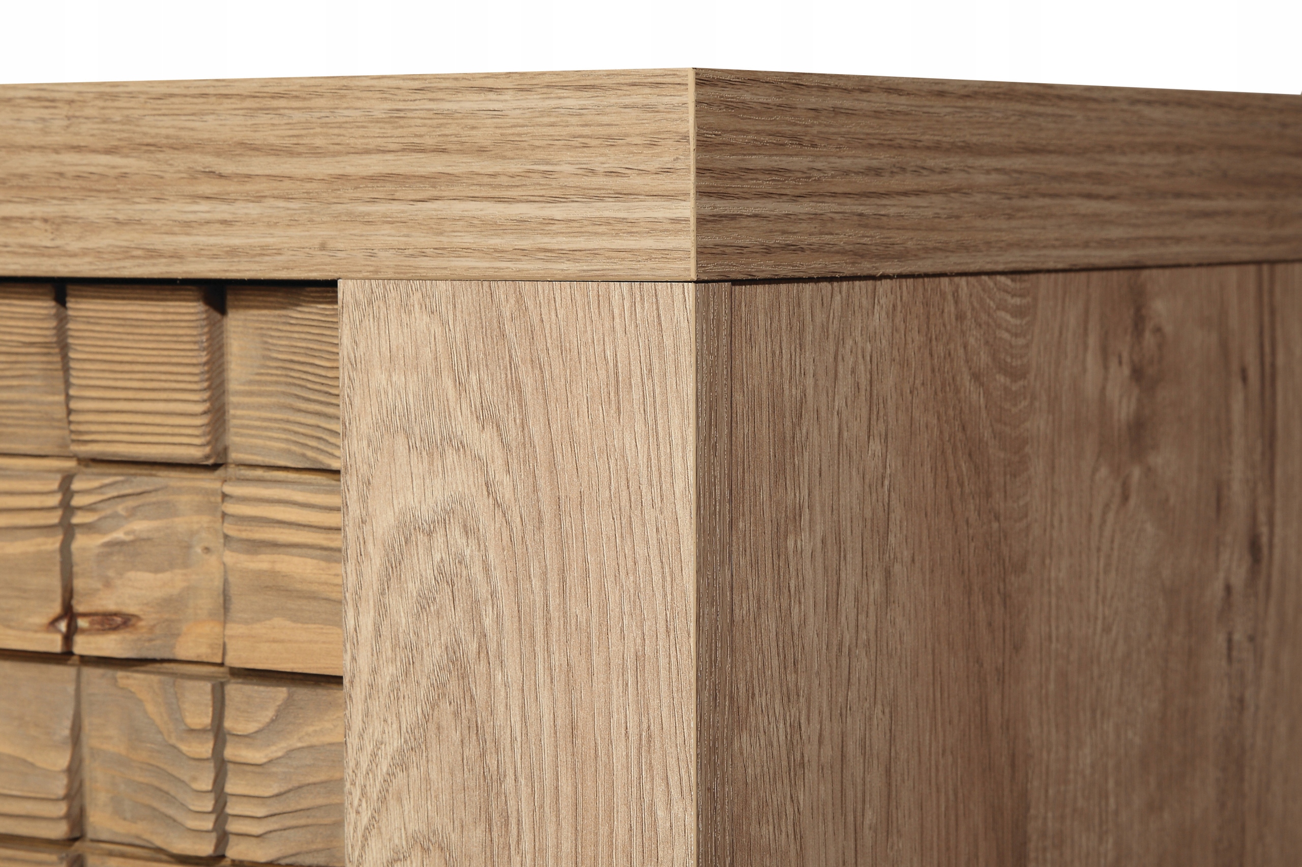 Kolekcja NATURAL to meble, które przyciągają uwagę ciepłą kolorystyką dębu Ribbeck oraz starannym wykończeniem. Ich wyjątkowy charakter podkreśla dekoracyjna wstawka z litego drewna sosnowego – ręcznie obrabiana, o naturalnej strukturze, która stanowi oryginalną ozdobę każdego frontu.