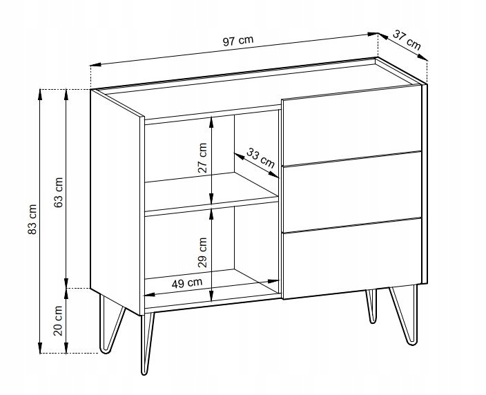 Komoda HARMONY to doskonałe połączenie funkcjonalności i elegancji, idealna do każdego wnętrza, które stawia na praktyczność oraz stylowy wygląd. Komoda wyposażona jest w jedne drzwi oraz trzy pojemne szuflady, co zapewnia mnóstwo miejsca do przechowywania różnych przedmiotów, od odzieży, po akcesoria domowe. Drzwiczki otwierają się za pomocą wysuniętych krawędzi, a szuflady działają w systemie PUSH TO OPEN, co umożliwia łatwe i bezproblemowe otwieranie bez uchwytów, zachowując minimalistyczny charakter.