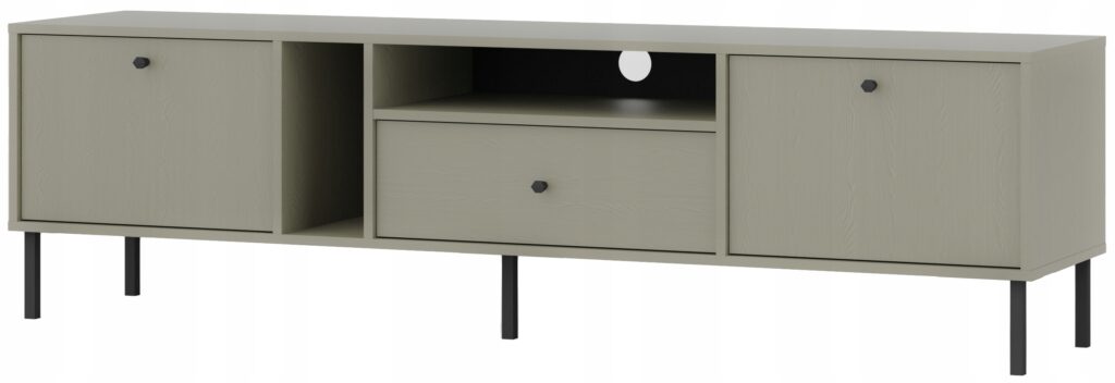 Dzięki metalowym, czarnym nóżkom, komoda zyskuje lekkość, a jednocześnie gwarantuje stabilność i trwałość. Zastosowanie systemu PUSH TO OPEN zapewnia nowoczesne i wygodne użytkowanie bez uchwytów. Dodatkowo, krawędzie komody zabezpieczone są obrzeżem ABS, co zapewnia długotrwałą trwałość i odporność na uszkodzenia.