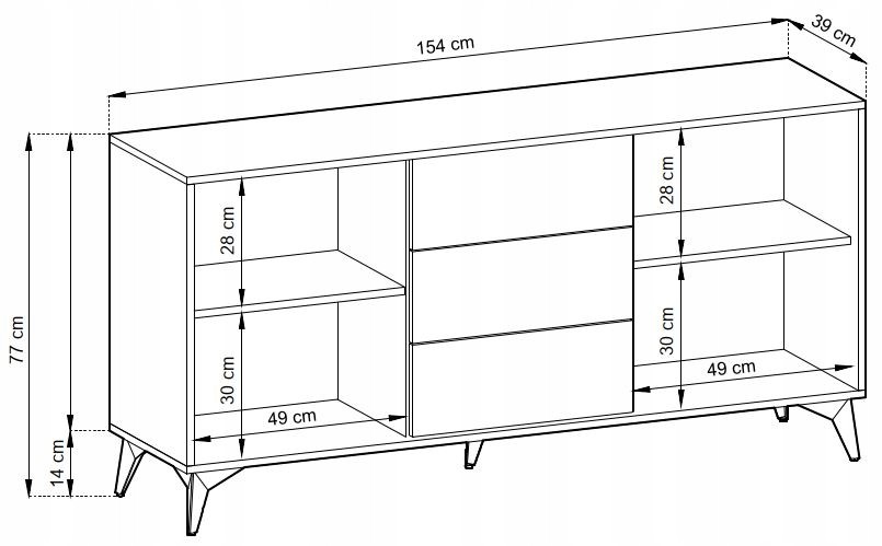 Komoda została zaprojektowana z myślą o funkcjonalności — przestronne szuflady oraz dwoje drzwiczek oferują dużo miejsca na przechowywanie. Stabilność i trwałość konstrukcji zapewniają metalowe, czarne nóżki, które nadają meblowi nowoczesny wygląd. System PUSH TO OPEN ułatwia codzienne użytkowanie, podkreślając minimalistyczny styl.