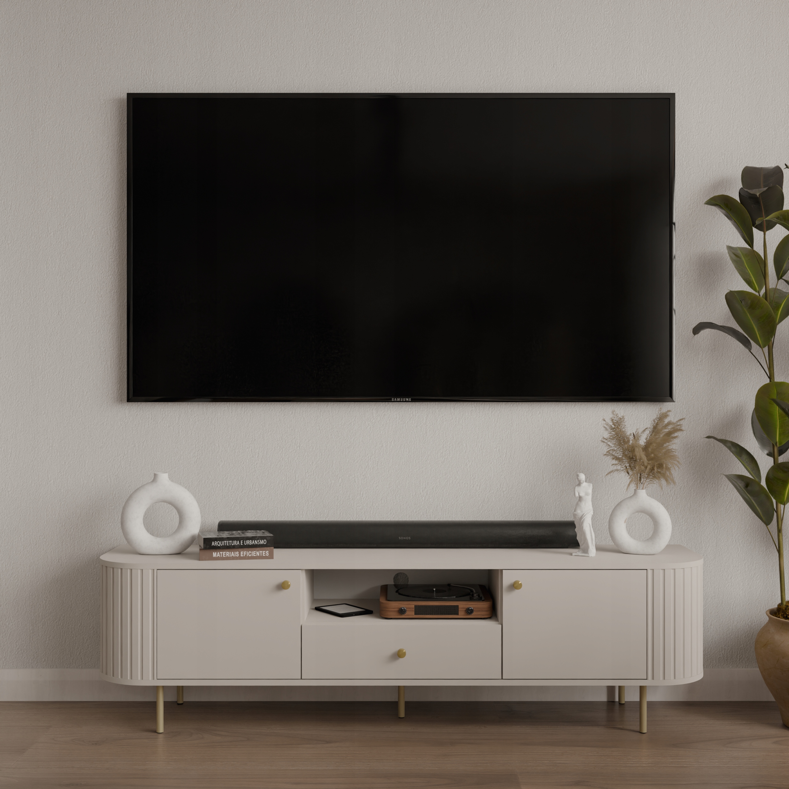 Szafka RTV OVALIO 180 cm w kolorze Beż Piaskowy z szufladą i szafkami