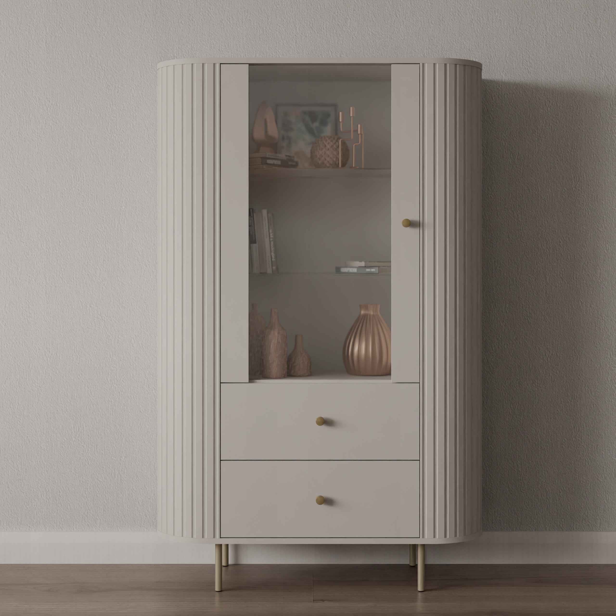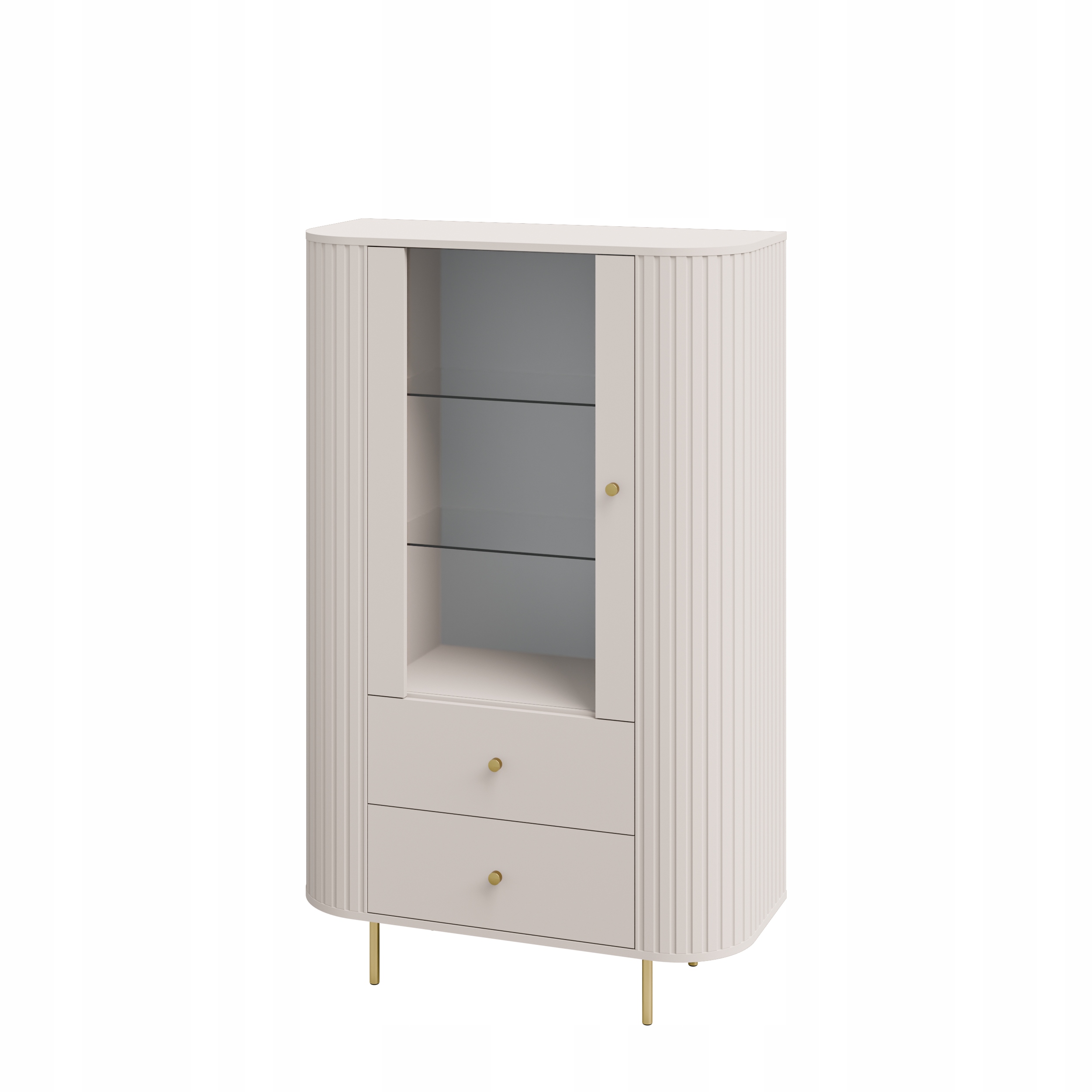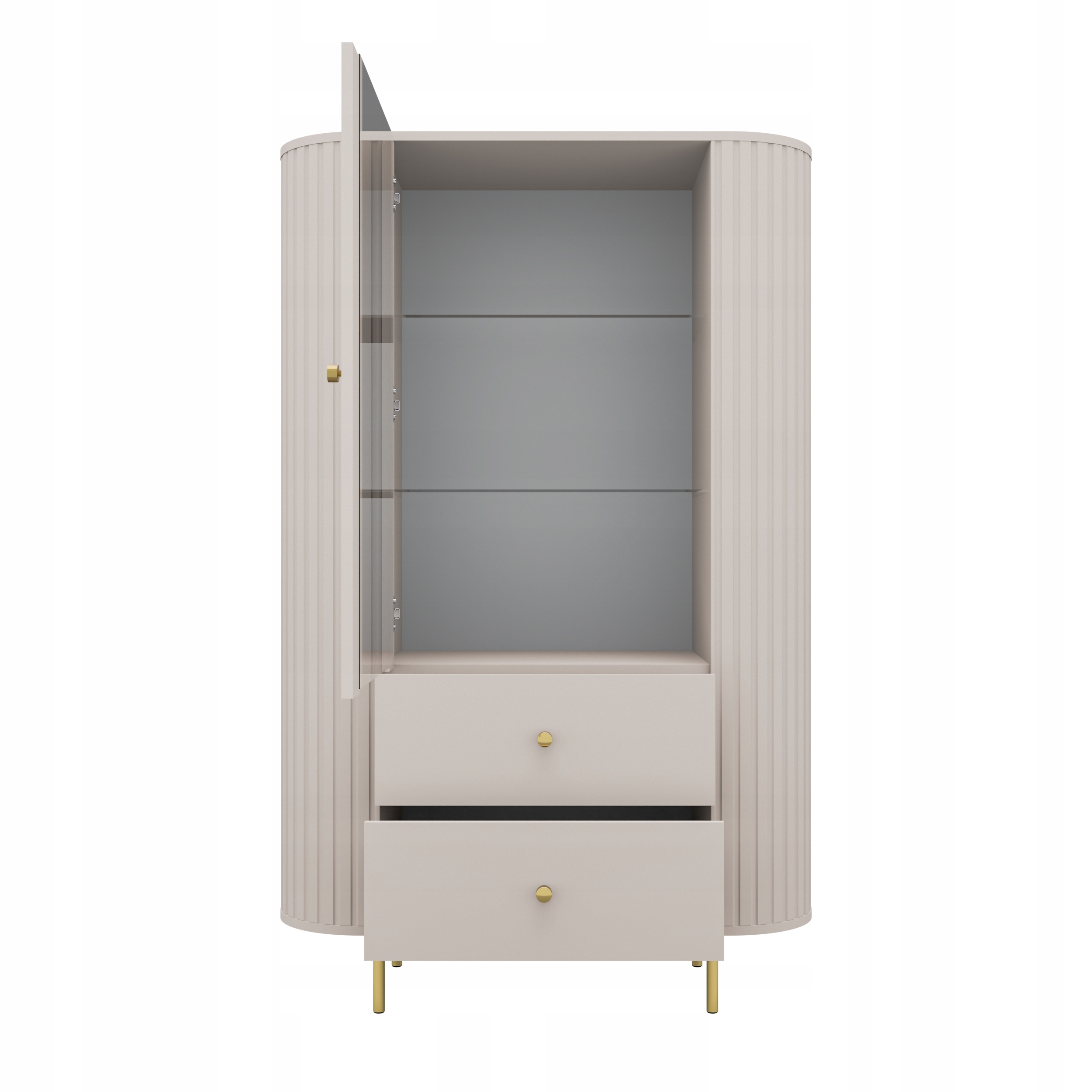 Witryna OVALIO 98 cm w kolorze Beż Piaskowy z przeszklonym frontem