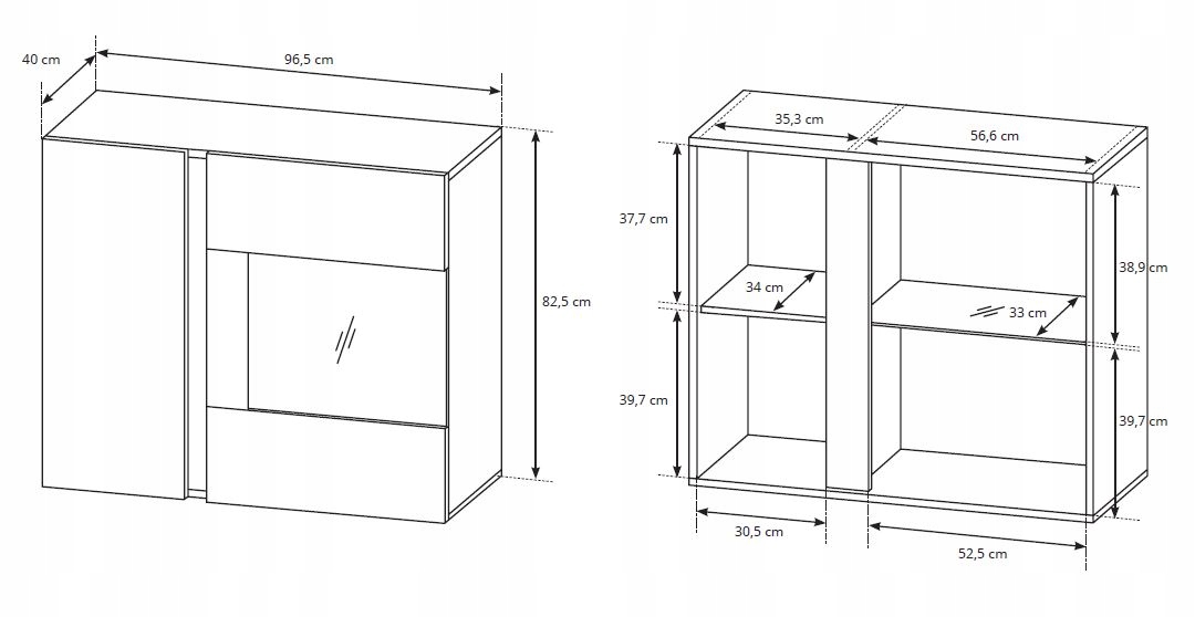 Fronty w białym połysku w połączeniu z kontrastującym dębowym akcentem i matowym korpusem nadają witrynie wyrazistego, nowoczesnego charakteru. Dzięki systemowi otwierania PUSH TO OPEN witryna jest wygodna w użytkowaniu i zachowuje minimalistyczny wygląd. Opcjonalne oświetlenie LED (dostępne za dodatkową opłatą) dodatkowo podkreśli elegancję szklanych półek, dodając subtelne, nastrojowe światło.