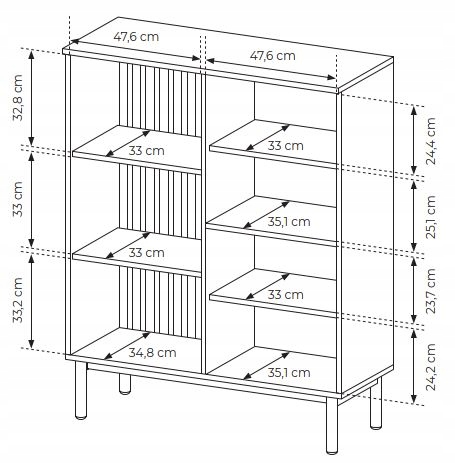 Witryna ARIA to stylowy element, który wprowadzi elegancję do salonu, pokoju dziennego, a także przedpokoju. Niska, trzydrzwiowa witryna łączy funkcjonalność i nowoczesny design, co czyni ją idealnym wyborem do wnętrz o współczesnym stylu. Za szklanym frontem znajduje się przestrzeń z dwiema półkami, idealna do eksponowania dekoracji i ozdób. Z kolei za pełnymi drzwiami umieszczono dodatkowe półki, zapewniając miejsce na przechowywanie różnych przedmiotów w uporządkowany sposób.