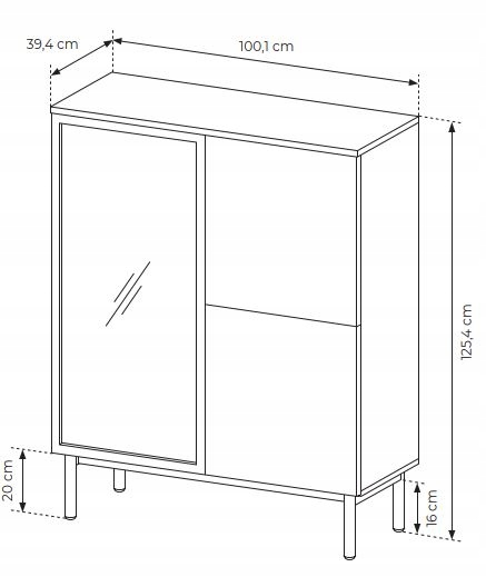 Witryna ARIA wyposażona jest w wygodny system PUSH TO OPEN, który ułatwia codzienne użytkowanie, a całość osadzona jest na czarnych, drewnianych nóżkach, które dodają lekkości konstrukcji. Wysokiej jakości laminowana płyta i obrzeża ABS zapewniają trwałość i odporność na uszkodzenia, dzięki czemu witryna zachowa swój elegancki wygląd przez długie lata.