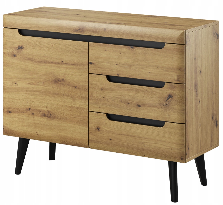 Wygodne otwieranie PUSH TO OPEN, nowoczesne metalowe uchwyty oraz stabilne nogi o wysokości 15 cm podkreślają wyjątkowy design mebla i zapewniają komfort użytkowania. Witryna doskonale komponuje się z innymi elementami kolekcji, pozwalając na stworzenie spójnej i harmonijnej aranżacji wnętrza.