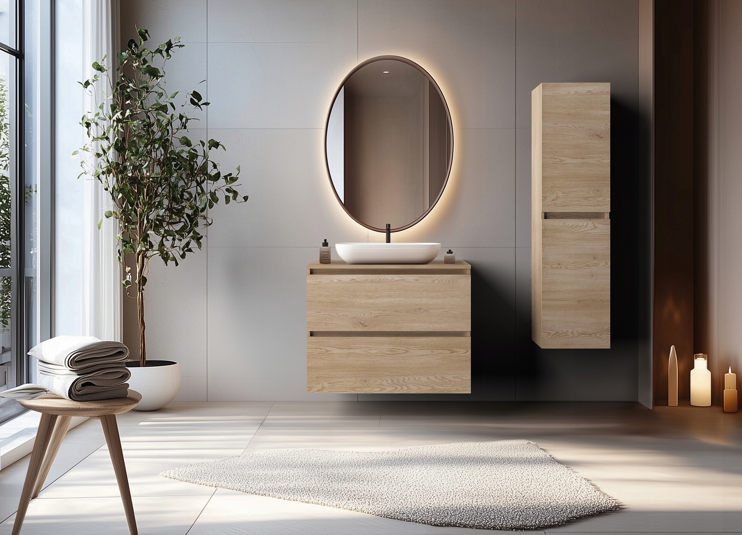 Blat łazienkowy dąb jasny 80 cm – nowoczesny wygląd, większy komfort!