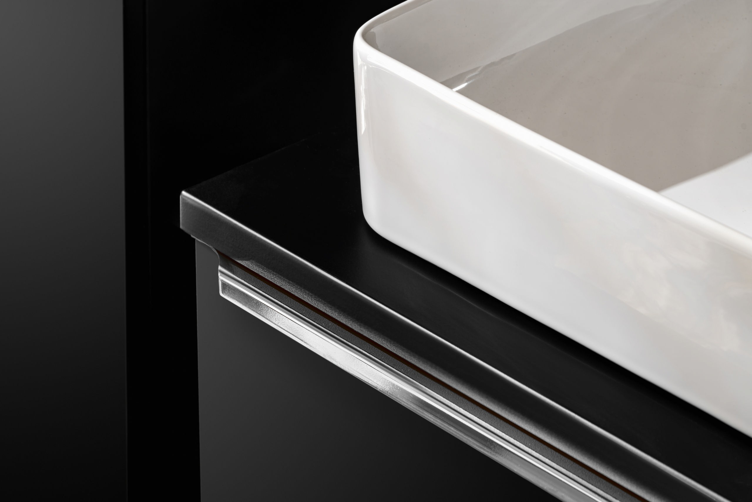 Blat do szafki pod umywalkę z kolekcji SANTA FE BLACK wyróżnia się elegancją i nowoczesnym designem. Wykonany z wytrzymałego MDF o grubości 2,5 cm, pokryty czarną folią PVC Orchidea, idealnie komponuje się z głębokim matowym wykończeniem całej kolekcji, wprowadzając do łazienki wyjątkowy, luksusowy klimat. Dzięki swojej odporności na wilgoć oraz solidnej konstrukcji blat ten nie tylko zachwyca wyglądem, ale również zapewnia trwałość i funkcjonalność na lata. Kolekcja SANTA FE BLACK dostępna jest na naszych pozostałych aukcjach, a wszystkie elementy, w tym blat, są wyprodukowane w Polsce, co gwarantuje wysoką jakość wykonania i dbałość o szczegóły.