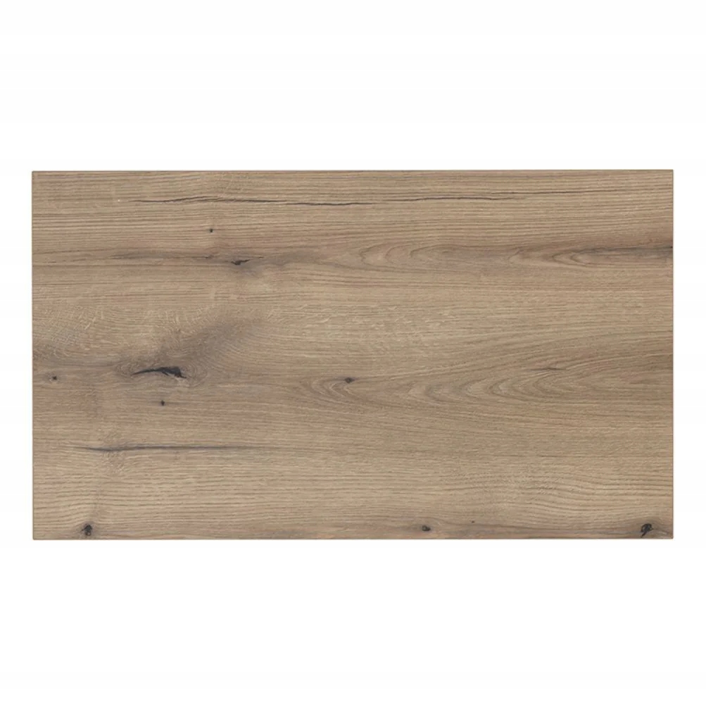 Wykonany z płyty laminowanej, blat wyróżnia się odpornością na wilgoć oraz trwałością niezbędną w codziennym użytkowaniu. Dekor inspirowany drewnem i precyzyjne wykończenie nadają wnętrzu ciepły, naturalny charakter. Otwór pod umywalkę należy wykonać samodzielnie – zgodnie z jej wymiarem i pozycją odpływu.