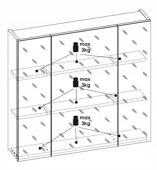 Wyposażona w trzy drzwi, szafka zapewnia mnóstwo miejsca na przechowywanie, a zawiasy z funkcją cichego domyku gwarantują komfort użytkowania. Geometryczna forma oraz metalowe uchwyty podkreślają nowoczesny design, idealnie komponując się z resztą kolekcji. Dodatkowo, lustro w frontach sprawia, że wnętrze staje się optycznie większe i jaśniejsze.