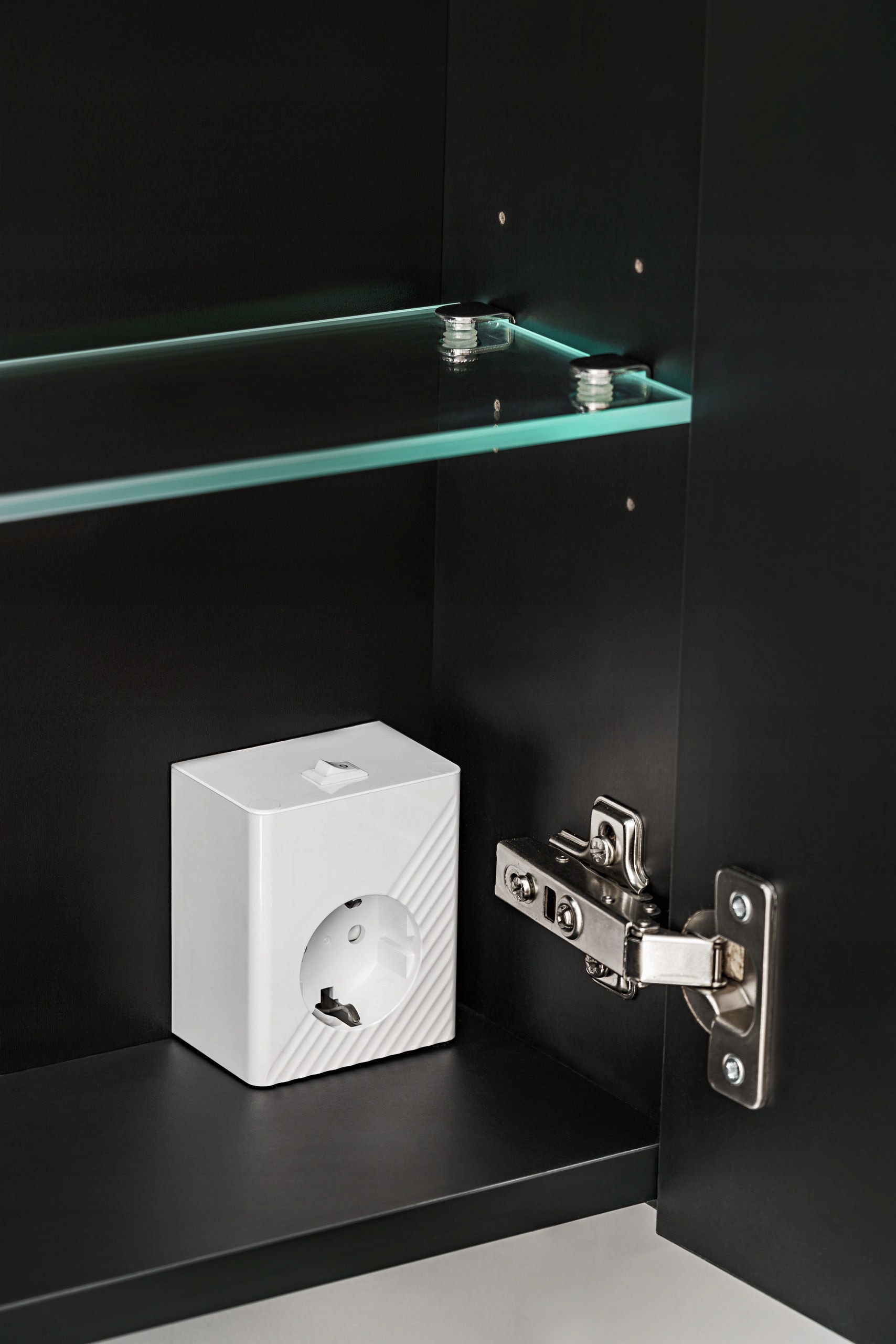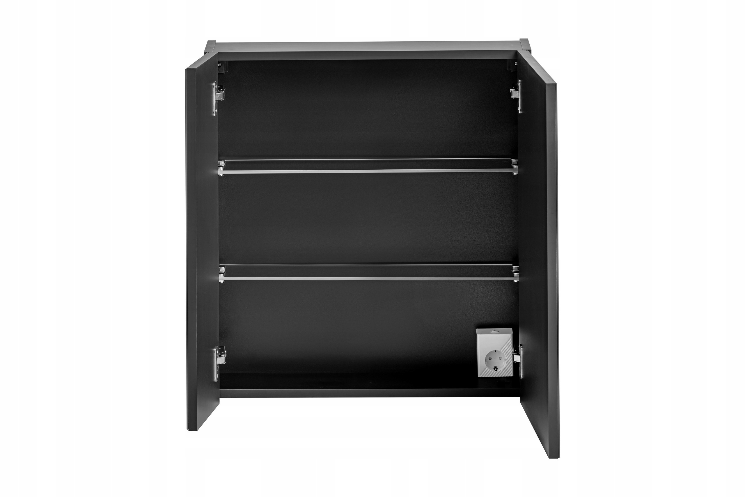 Czarna szafka łazienkowa z lustrem 60 cm to funkcjonalny i stylowy wybór, który idealnie wpasowuje się w nowoczesne łazienki. Wewnątrz szafki znajdziesz dwie szklane półki, które ułatwiają organizację kosmetyków i akcesoriów, oraz praktyczne gniazdko, które sprawia, że ładowanie urządzeń jest zawsze pod ręką. Lustro na froncie szafki dodaje przestrzeni lekkości, a pojemne wnętrze pozwala zachować porządek. System cichego domyku dopełnia komfort użytkowania, zapewniając płynne zamykanie drzwi.