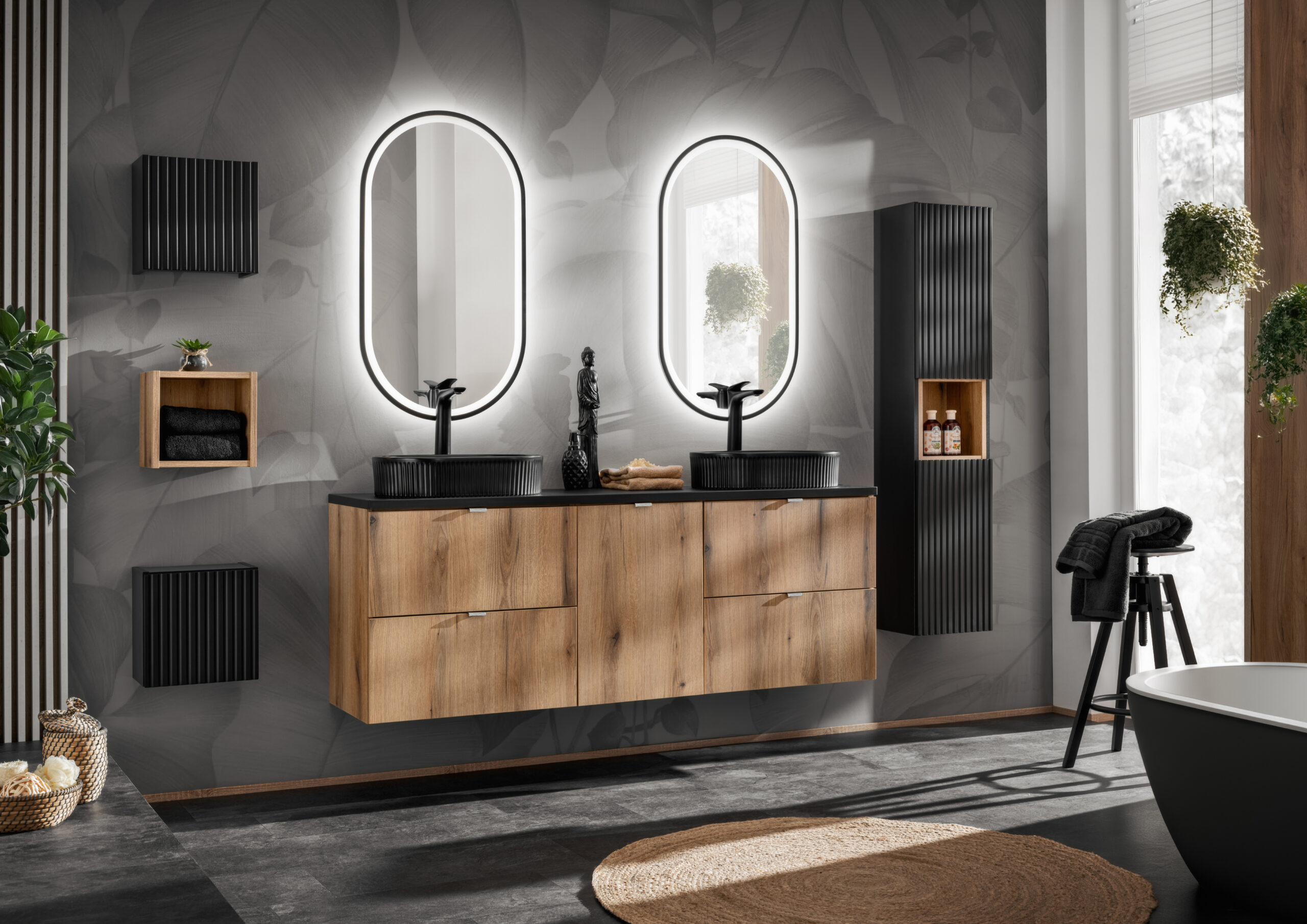 Półka łazienkowa QUBIK w kolorze dąb Coast Evoke to praktyczny i stylowy element wyposażenia, który doskonale uzupełnia nowoczesną aranżację łazienki. Regał górny może pełnić funkcję samodzielnej półki wiszącej, ale świetnie sprawdza się również jako dodatkowy element słupka łazienkowego, tworząc spójną i estetyczną zabudowę. Dekor drewna ociepla wnętrze i nadaje mu naturalny, modny charakter, dzięki czemu mebel dobrze komponuje się zarówno z jasnymi, jak i ciemniejszymi dodatkami. Kompaktowa forma sprawia, że półka łazienkowa pomaga lepiej wykorzystać przestrzeń, oferując dodatkowe miejsce na przechowywanie kosmetyków, akcesoriów lub dekoracji. Model z kolekcji NOVA Coast Evoke to idealne rozwiązanie do łazienki, pralni lub innych nowoczesnych wnętrz, w których liczy się funkcjonalność, estetyka i spójny wygląd mebli.