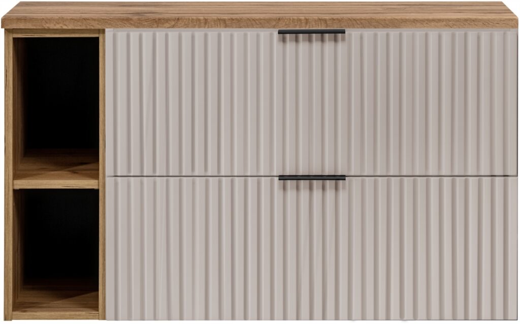Wykonana z dębu craft złotego z białym frontem w połysku, szafka emanuje elegancją i stylem, tworząc harmonijną całość w Twojej łazience. Dodatkowo, uniwersalny montaż drzwi (prawo lub lewostronny) oraz zaokrąglone kanty nadają meblowi lekkości i nowoczesnego charakteru.