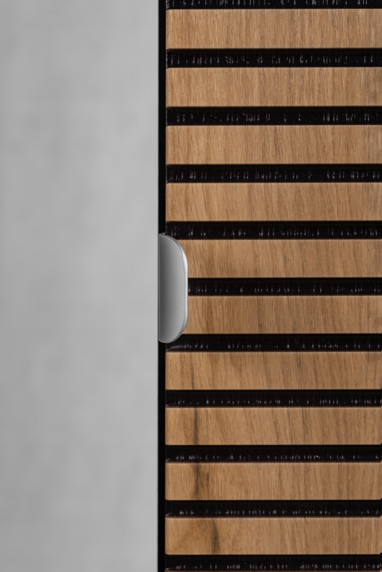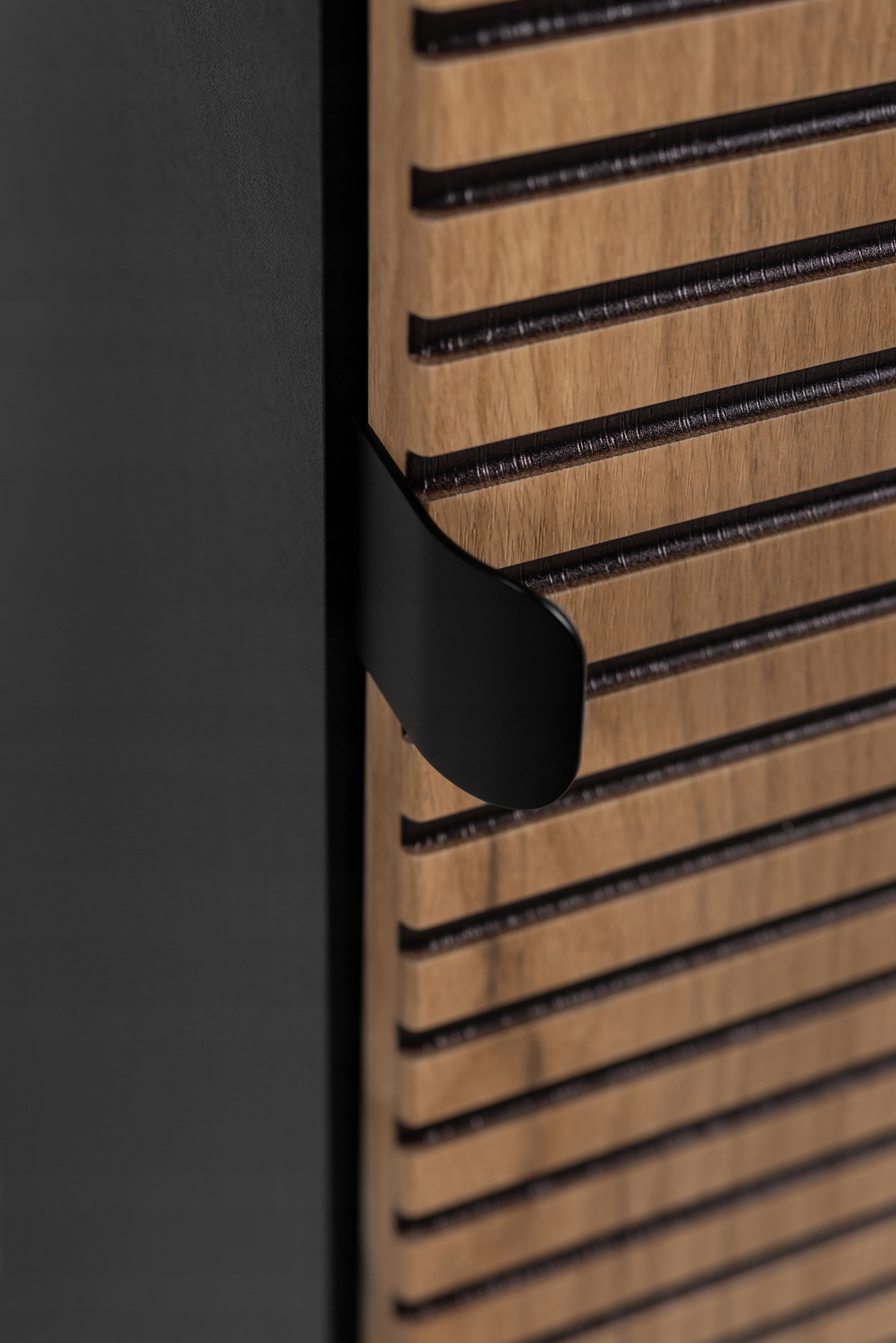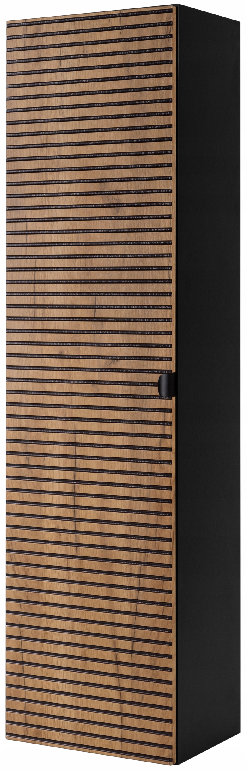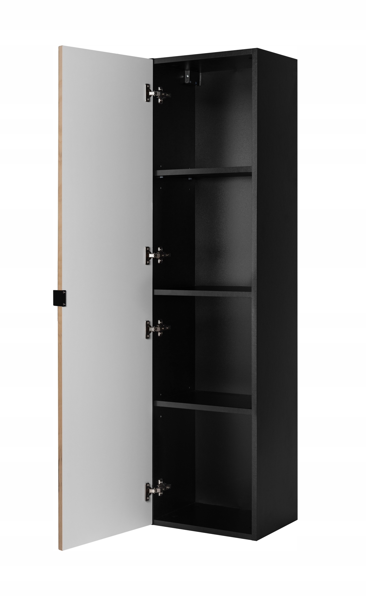 Słupek ŁAZIENKOWY AURA to doskonałe rozwiązanie dla osób ceniących nowoczesny design i funkcjonalność. Kolekcja AURA wyróżnia się eleganckim czarnym korpusem, który kontrastuje z frontem w odcieniu dąb craft złoty, dodając łazience wyjątkowego charakteru. Słupek, wyposażony w jedne drzwi z zawiasami SOFT CLOSE, zapewnia ciche i płynne zamykanie, co zwiększa komfort użytkowania. Wewnątrz znajdują się półki o regulowanej wysokości, co umożliwia dostosowanie przestrzeni do Twoich potrzeb. Dodatkowo, metalowe uchwyty w dwóch wariantach kolorystycznych – srebrnym i czarnym – pozwalają na łatwe dopasowanie do reszty wystroju.
