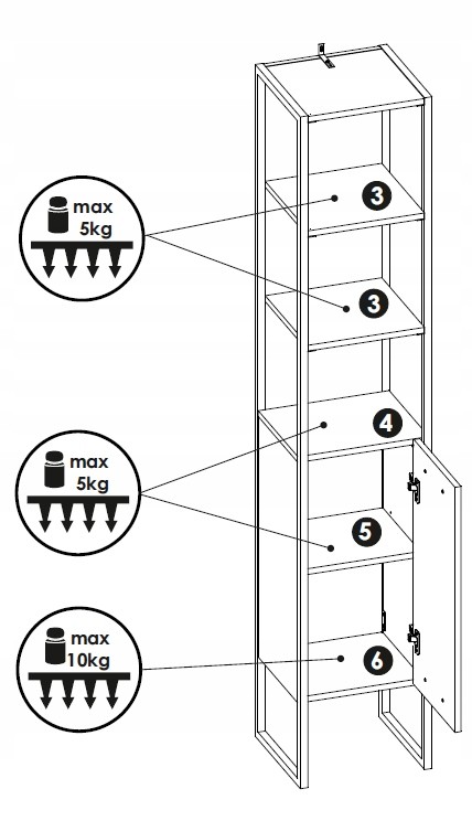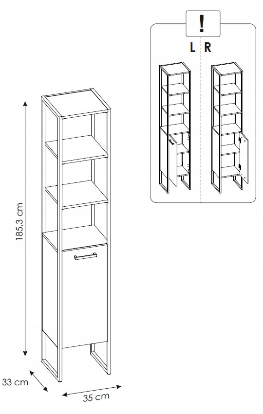 Słupek o wysokości 185 cm oferuje pojemną szafkę z funkcją cichego domyku (SOFT CLOSE) oraz półki, zapewniając dużo miejsca do przechowywania i organizacji łazienkowych akcesoriów. Uniwersalny montaż drzwi pozwala na dopasowanie ich do preferencji – lewo- lub prawostronnie, co czyni mebel jeszcze bardziej wszechstronnym.
