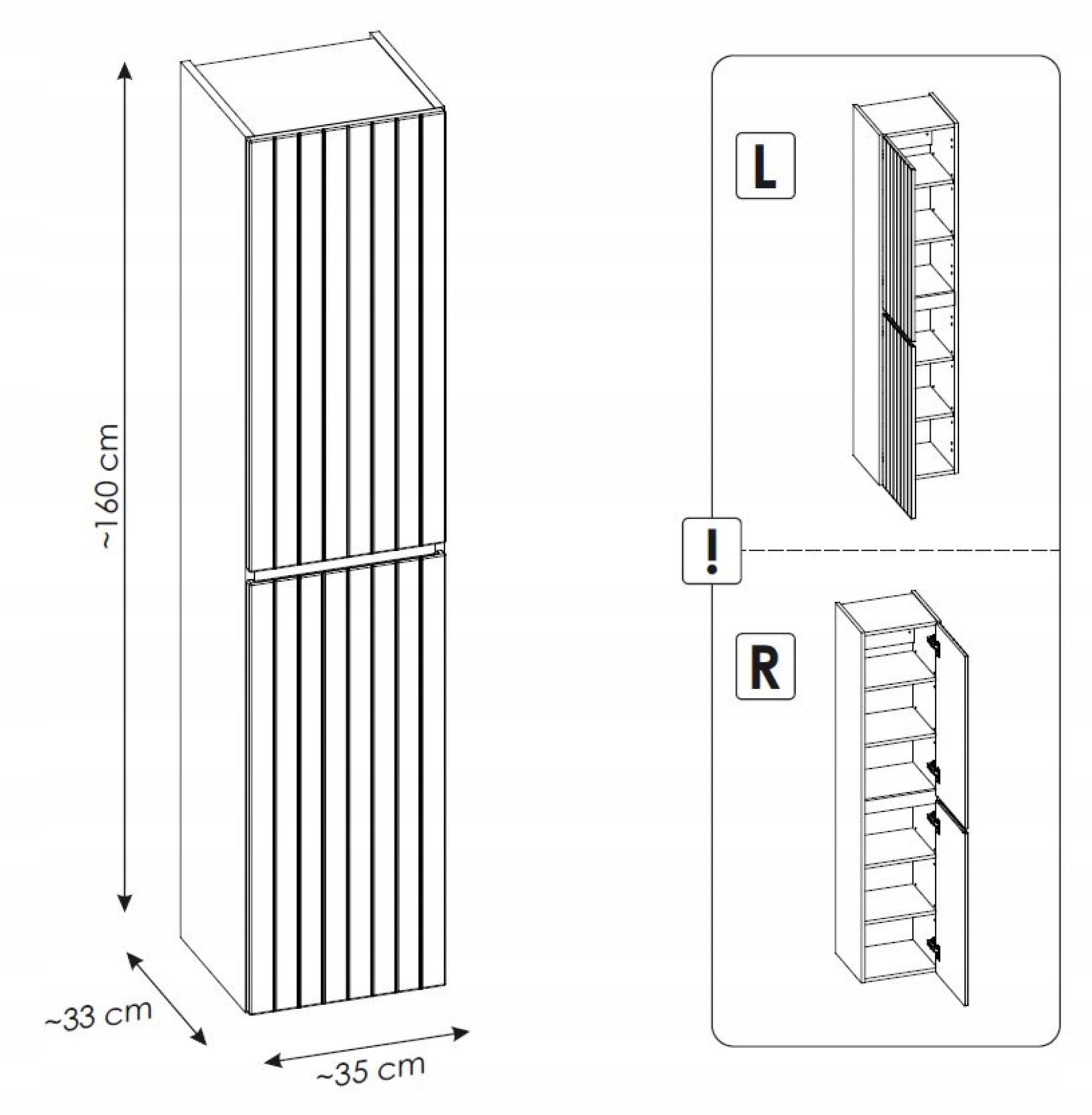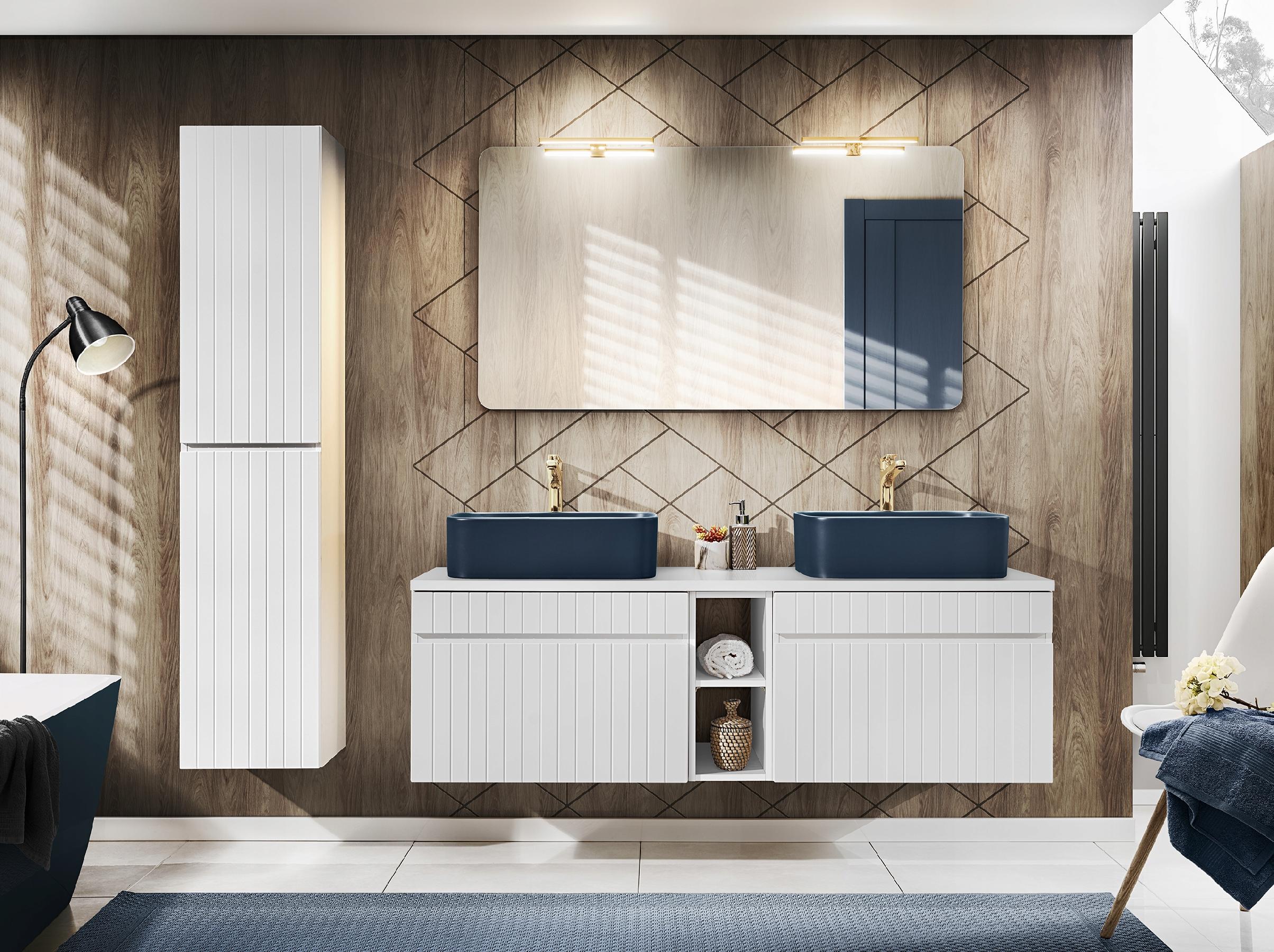 RYFLE na frontach nadają mu unikalny charakter, wprowadzając subtelny ruch do aranżacji. Dzięki dwóm drzwiom, które można montować zarówno prawostronnie, jak i lewostronnie, możesz dostosować słupek do swoich potrzeb. Zawiasy z funkcją soft close gwarantują ciche zamykanie, co podnosi komfort użytkowania.
