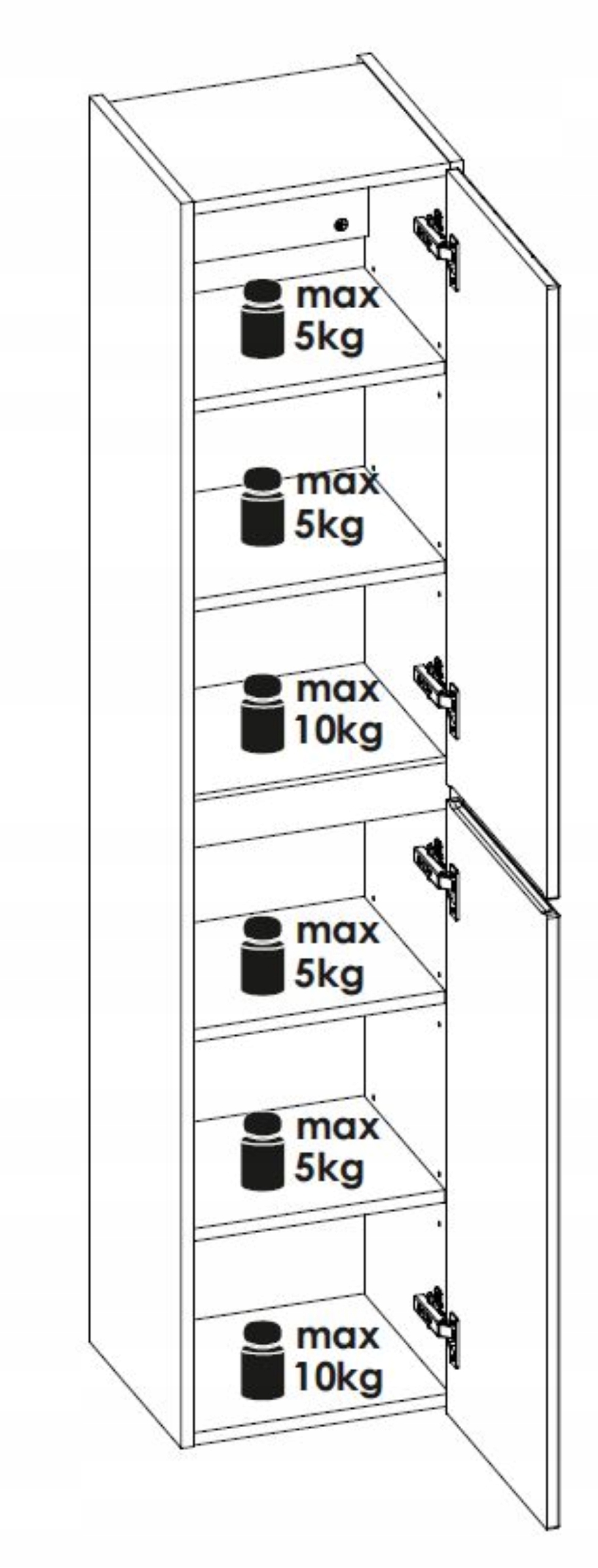 Wewnątrz znajdują się cztery półki, z których trzy mają możliwość regulacji wysokości, co zapewnia dużą elastyczność w przechowywaniu różnych przedmiotów. Wykonanie z wysokiej jakości materiałów sprawia, że słupek nie tylko dobrze wygląda, ale jest również odporny na codzienne użytkowanie.