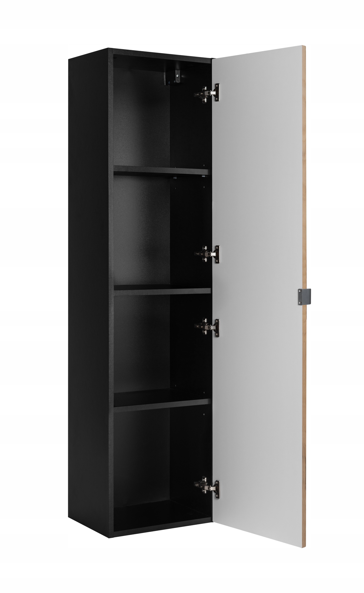 Kolekcja MADIS oferuje szeroki wybór brył, w tym wysoki słupek wiszący, który idealnie nadaje się do przechowywania większej ilości przedmiotów. Dzięki uniwersalnemu montażowi drzwi, możesz łatwo dostosować mebel do swojej przestrzeni, a 3 poziomy półek pozwalają na optymalne zagospodarowanie wnętrza.