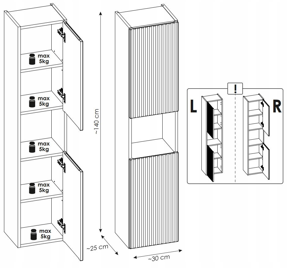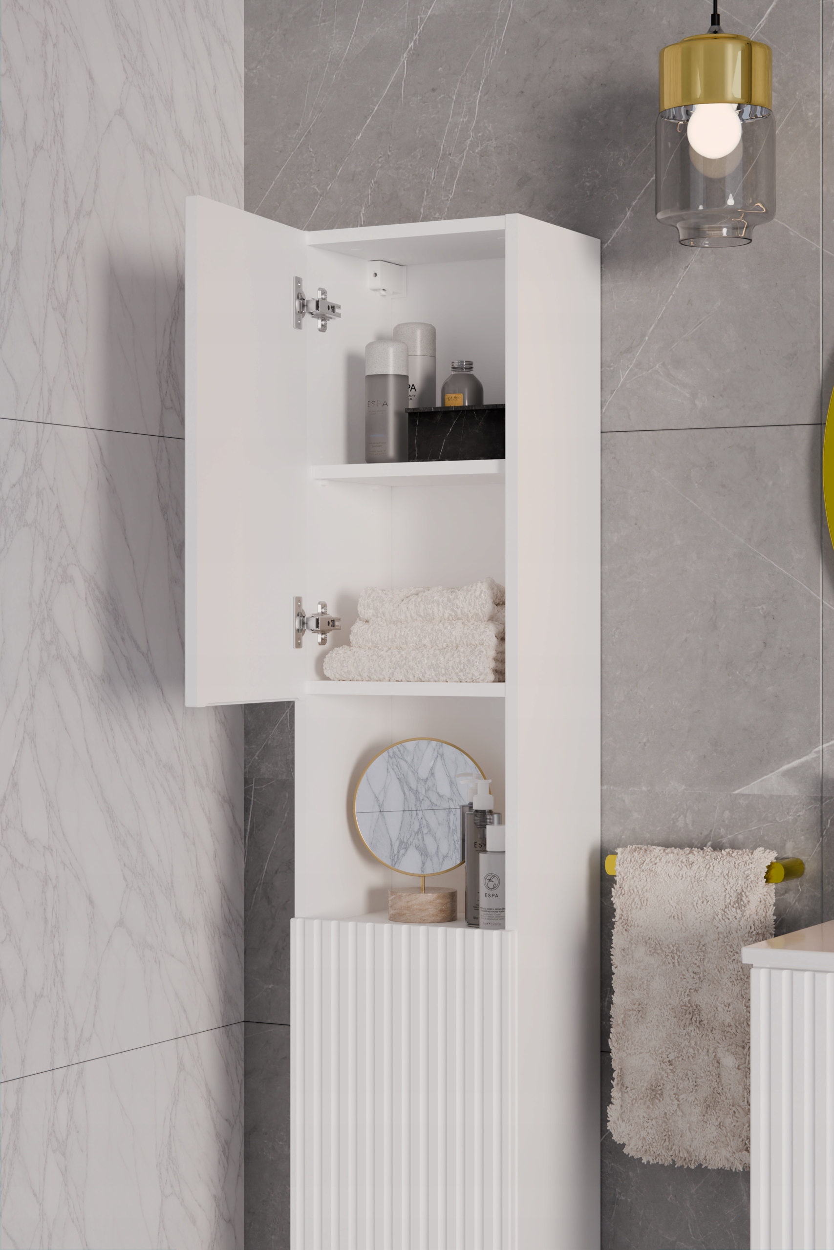 Wysoki słupek łazienkowy z kolekcji NOVA WHITE to idealne rozwiązanie dla osób szukających stylu i funkcjonalności w jednym. Jego eleganckie ryflowane fronty oraz minimalistyczne wykończenie w białym macie wprowadzają do wnętrza wyjątkowy charakter. Przestronny, o wysokości 140 cm, oferuje sporo miejsca do przechowywania, bez zajmowania cennej powierzchni podłogowej. System cichego domyku SOFT CLOSE oraz uniwersalny montaż drzwi zapewniają wygodę użytkowania i dostosowanie do różnych potrzeb. Słupek NOVA WHITE to praktyczny i stylowy element, który wzbogaci każdą łazienkę, nadając jej nowoczesny i elegancki wygląd.
