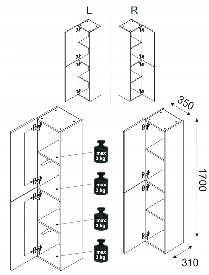 Dodaj nowoczesny akcent do swojej łazienki dzięki wysokiemu słupkowi łazienkowemu z kolekcji OCEAN. Ten elegancki, czarny słupek o wysokości 170 cm wyróżnia się frontem 3D z subtelnym wzorem inspirowanym oceanicznymi falami, co wprowadza do wnętrza nutę natury i spokoju. Korpus w odcieniu dębu olejowanego i czarne matowe wykończenie tworzą efektowny kontrast, idealny dla nowoczesnych aranżacji. Przestronne wnętrze z 4 wewnętrznymi półkami zapewnia praktyczne miejsce na przechowywanie kosmetyków i akcesoriów łazienkowych. Drzwi z systemem cichego domyku SOFT CLOSE gwarantują wygodę, a opcja montażu po prawej lub lewej stronie pozwala na pełne dostosowanie mebla do indywidualnych potrzeb i przestrzeni.
