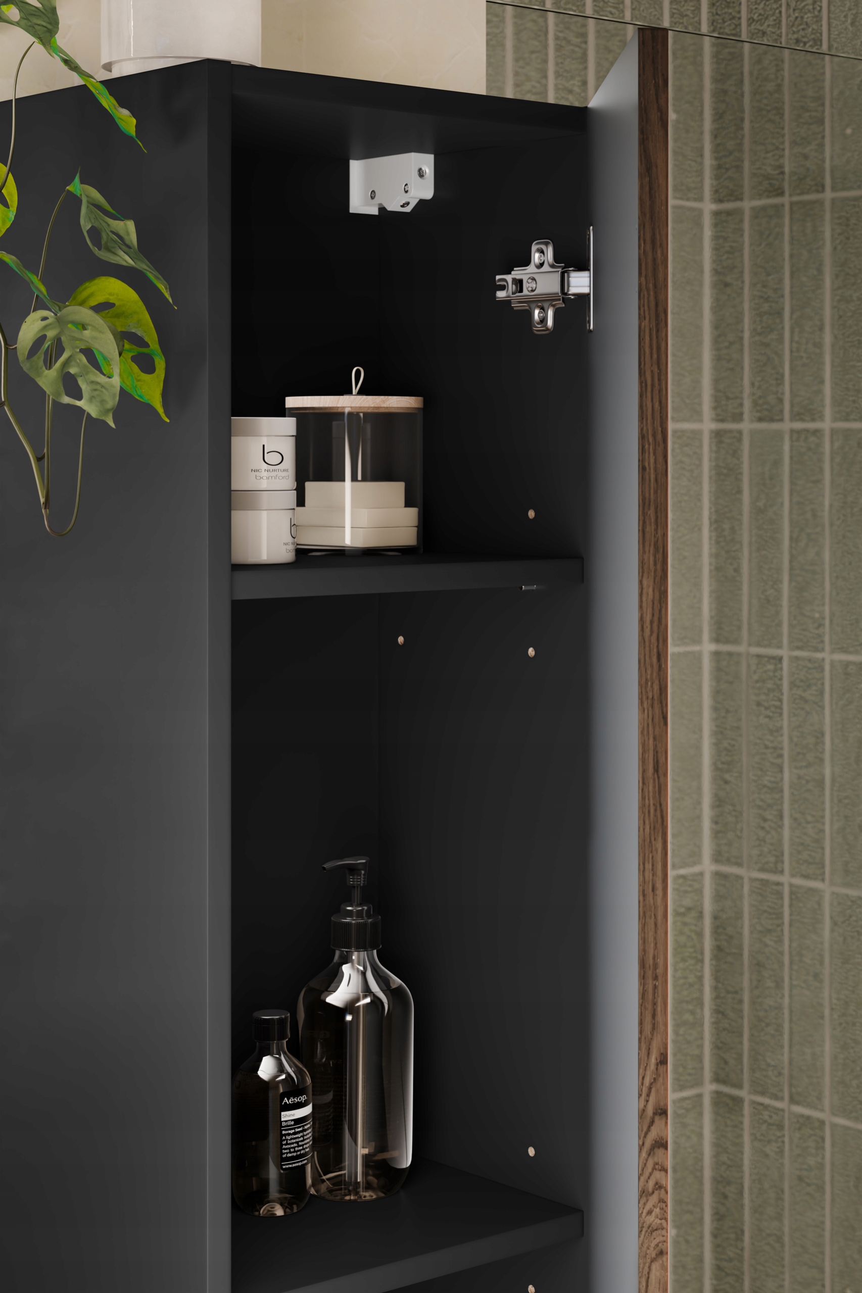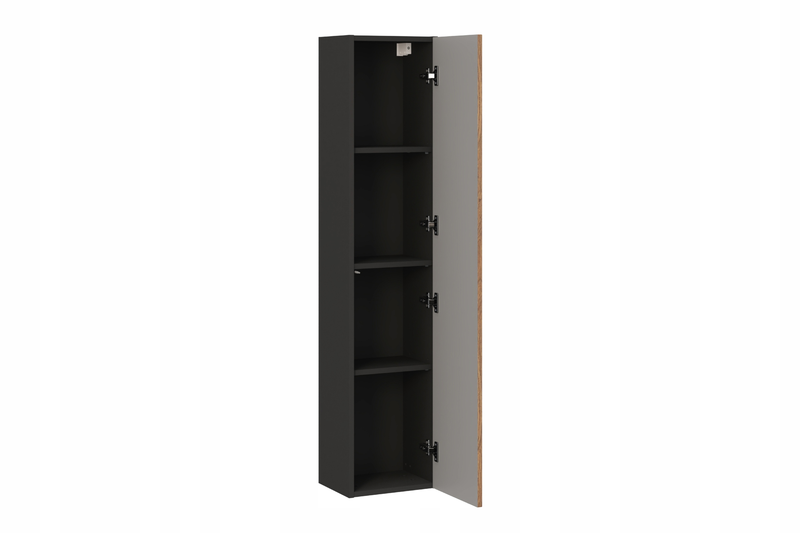 Meble z tej serii to także praktyczne rozwiązania na co dzień – system otwierania PUSH TO OPEN zapewnia wygodę użytkowania, a uniwersalne drzwi z możliwością montażu po lewej lub prawej stronie dopasują się do Twoich potrzeb. Frezowany front podkreśla nowoczesny wygląd, a forma mebli wiszących pozwala optymalnie wykorzystać przestrzeń. Całość została wyprodukowana w POLSCE, co gwarantuje wysoką jakość wykonania i dbałość o detal