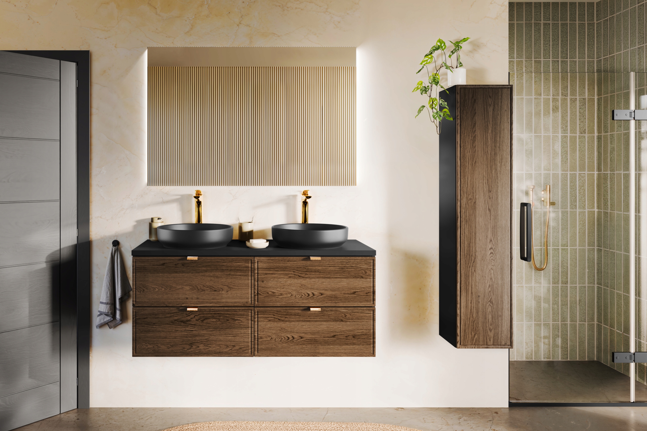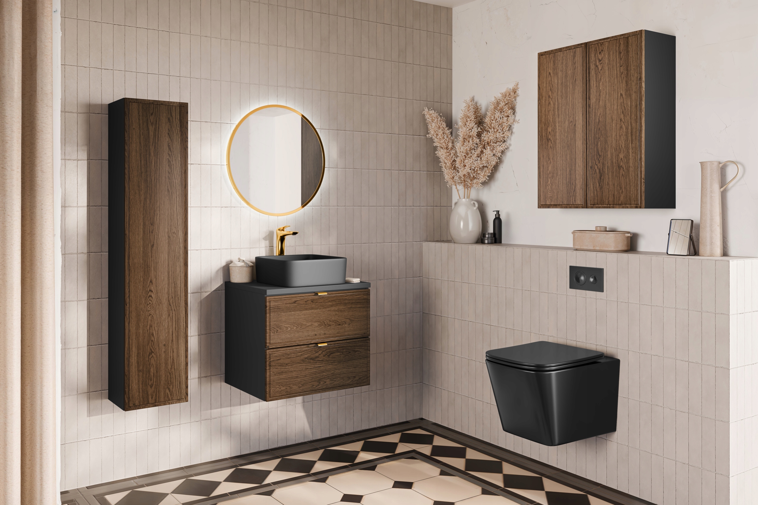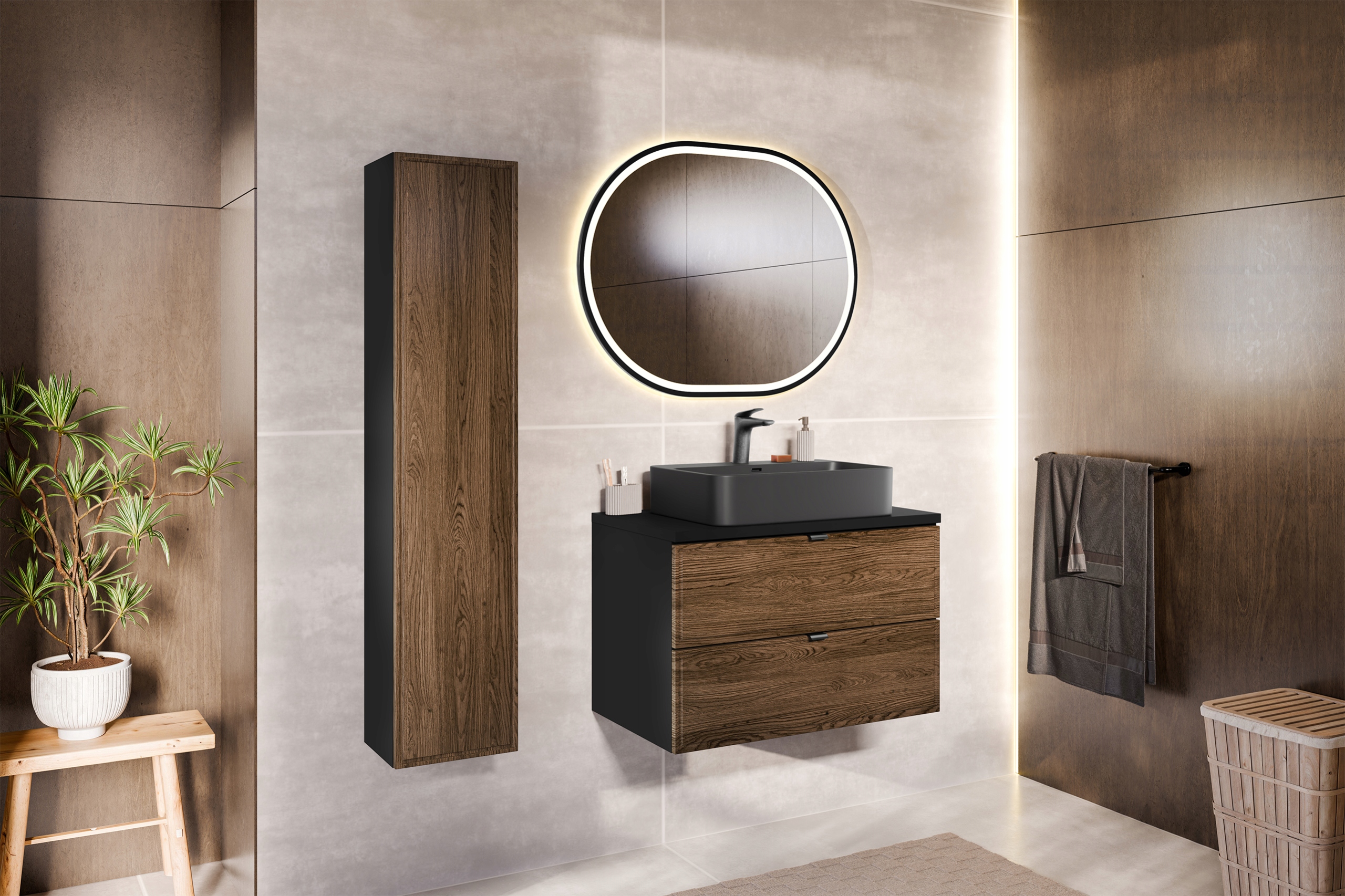 Kolekcja TALIA CASELLA to doskonały wybór dla osób ceniących elegancję i nowoczesność, które pragną stworzyć wnętrze pełne stylu i funkcjonalnych rozwiązań. Fronty z subtelną, frezowaną ramką w dekorze Dąb Casella wprowadzają do pomieszczenia ciepło i przytulność, wiernie oddając naturalne piękno drewna, co czyni meble wyjątkowo estetycznymi. Z kolei matowe, czarne korpusy nadają kolekcji głębi i nowoczesnego charakteru, tworząc wyrazisty kontrast, który podkreśla unikalny styl każdej aranżacji.