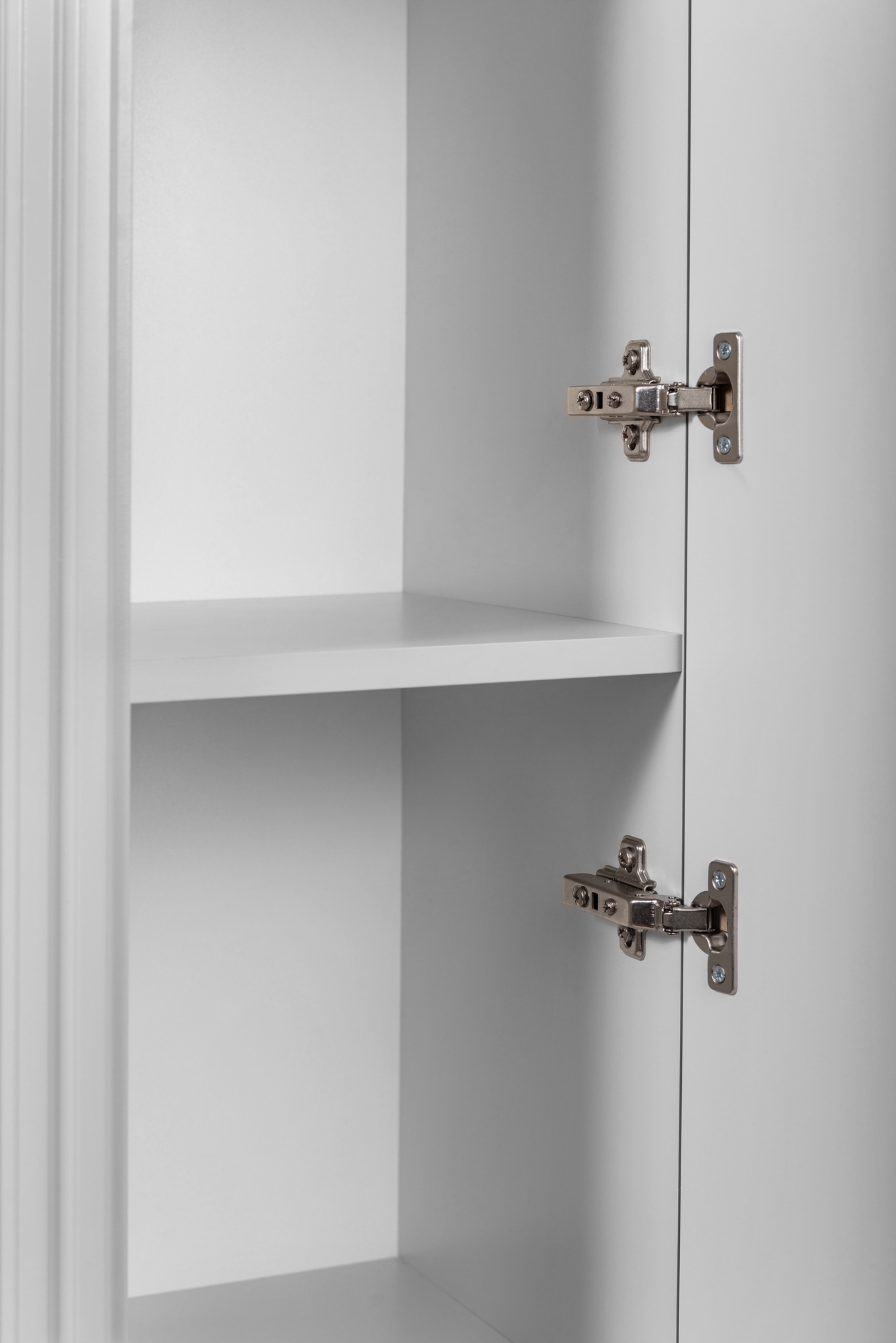 Model wyposażono w zawiasy z funkcją cichego domyku, co zapewnia komfort użytkowania oraz chroni przed hałasem. Słupek można zamontować jako lewy lub prawy, dzięki czemu łatwo dopasować go do układu pomieszczenia. W zestawie znajdują się dwa kolory uchwytów – czarny i złoty – umożliwiające dopasowanie mebla do pozostałych elementów wystroju.