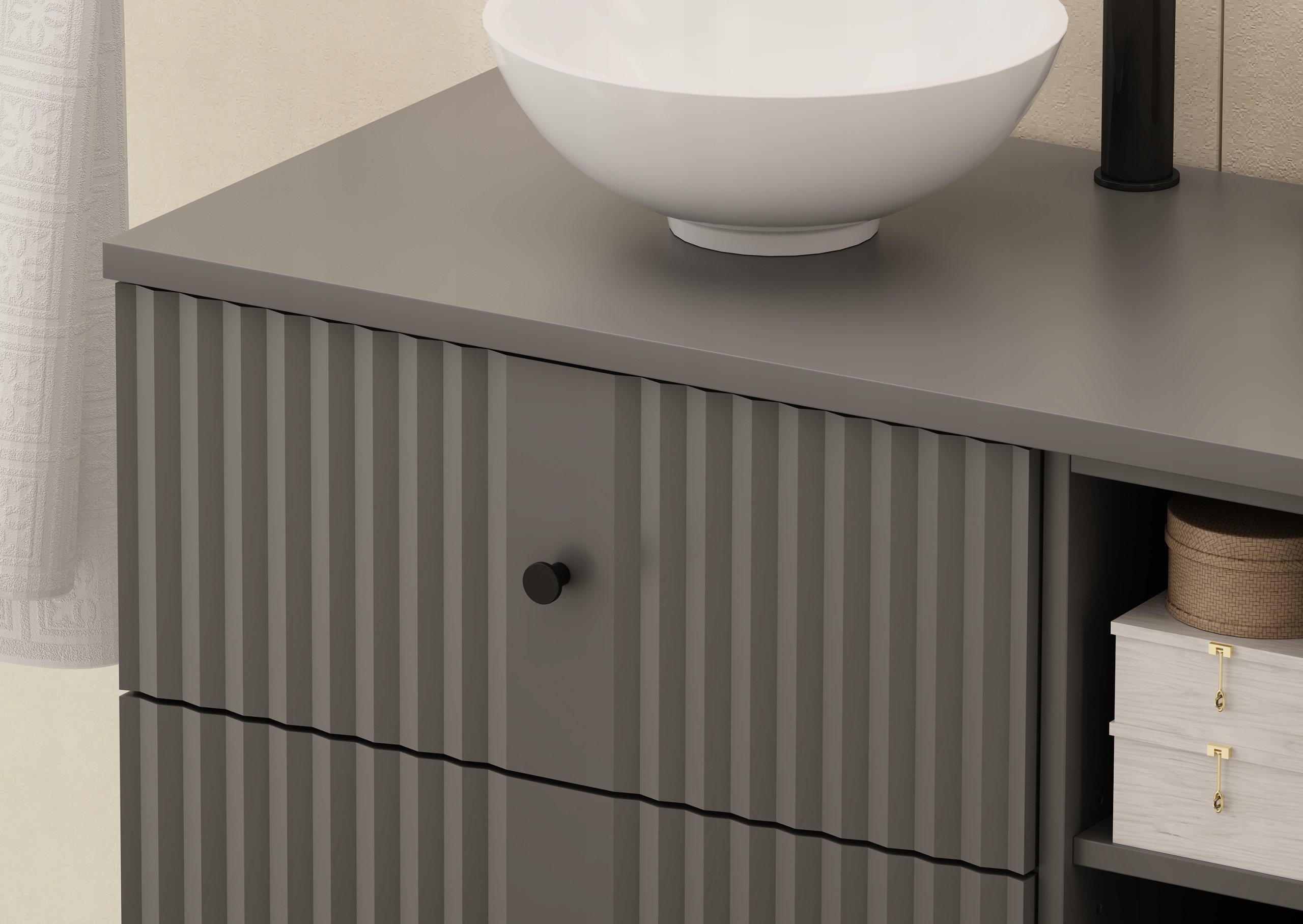 XILO 60 cm Antracytowa Szafka Łazienkowa z Blatem Wisząca 2 Szuflady