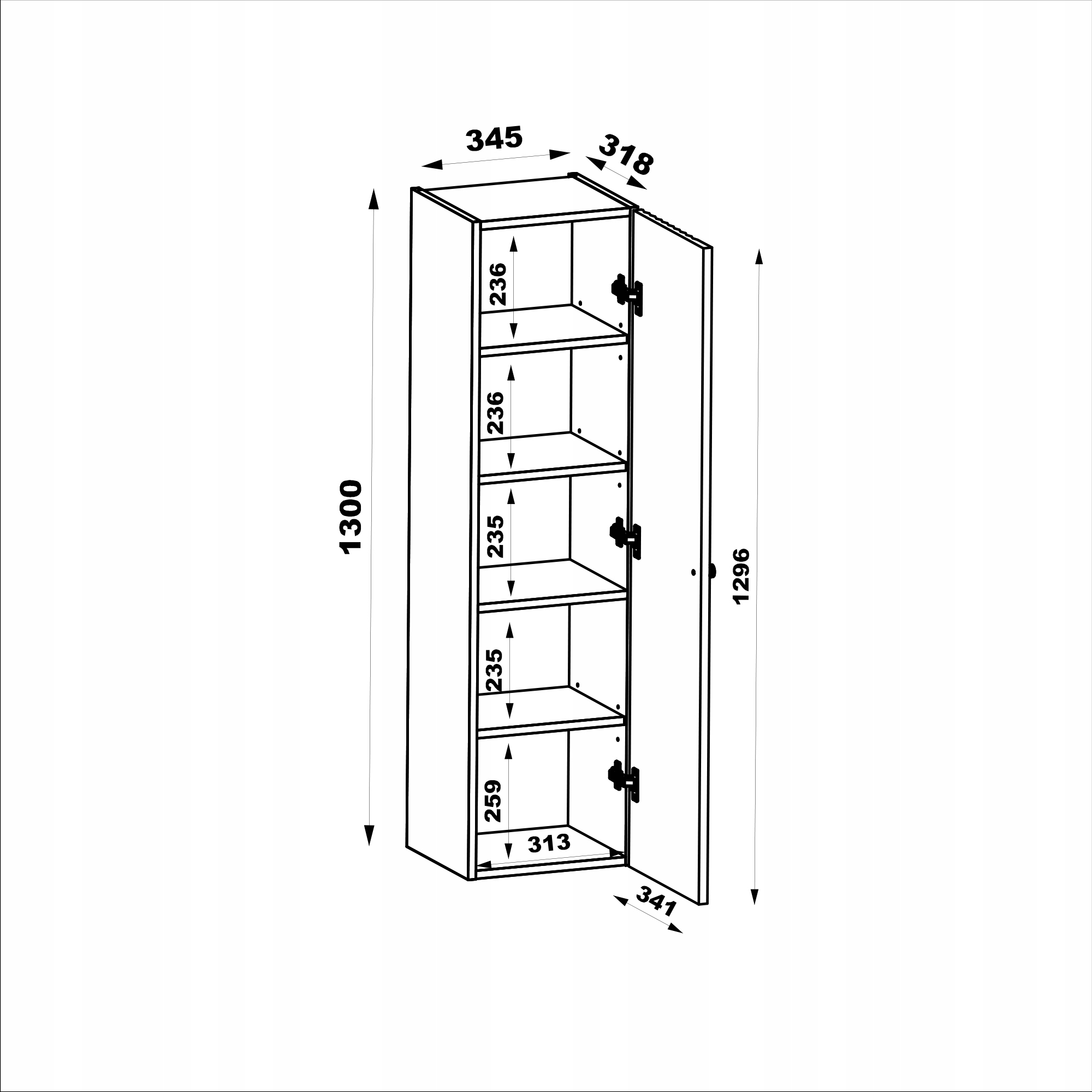 • Słupek łazienkowy XILO 130 cm – szerokość: 34,5 cm, wysokość: 130 cm, głębokość: 31,8 cm