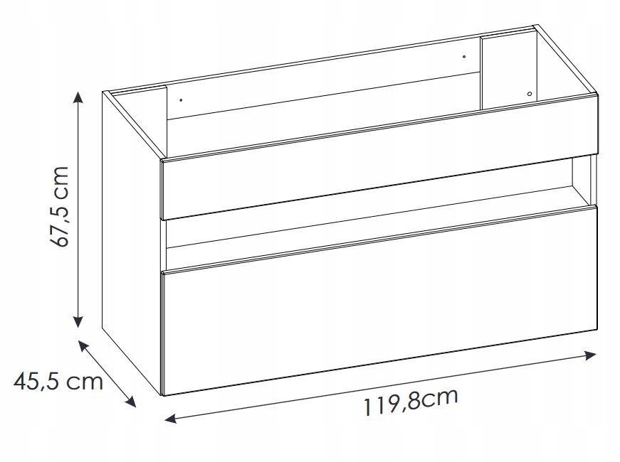 • Szafka łazienkowa BAHAMA 120 cm – szerokość: 119,8 cm, wysokość: 67,5 cm, głębokość: 45,5 cm