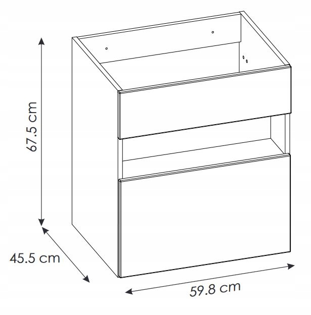 • Szafka łazienkowa BAHAMA 60 cm – szerokość: 59,8 cm, wysokość: 67,5 cm, głębokość: 45,5 cm