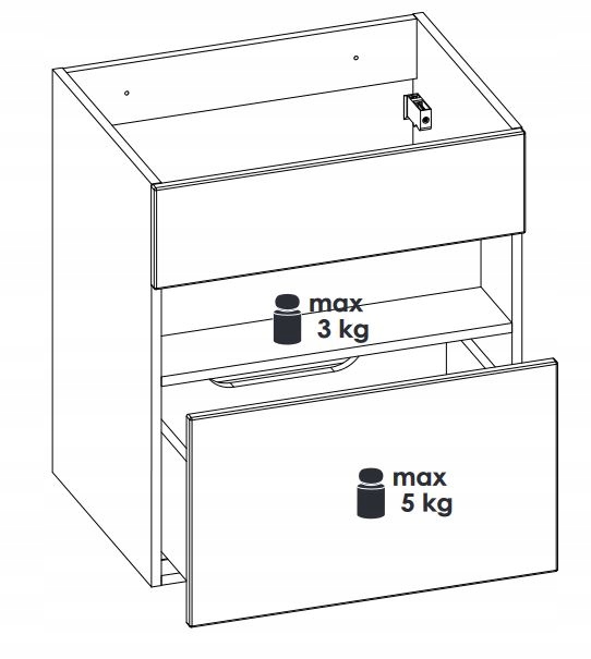 Szafka o szerokości 60 cm została zaprojektowana z myślą o komforcie użytkowania. Wyposażona w pojemną szufladę z systemem cichego domykania (SOFT CLOSE) oraz wbudowane oświetlenie LED, zapewnia nie tylko praktyczne przechowywanie, ale też efektowne podświetlenie przestrzeni. Wisząca konstrukcja nadaje wnętrzu nowoczesny charakter i ułatwia utrzymanie czystości.
