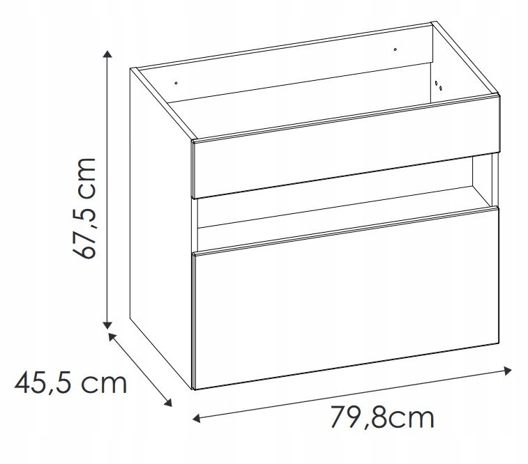 • Szafka łazienkowa BAHAMA 80 cm – szerokość: 79,8 cm, wysokość: 67,5 cm, głębokość: 45,5 cm
