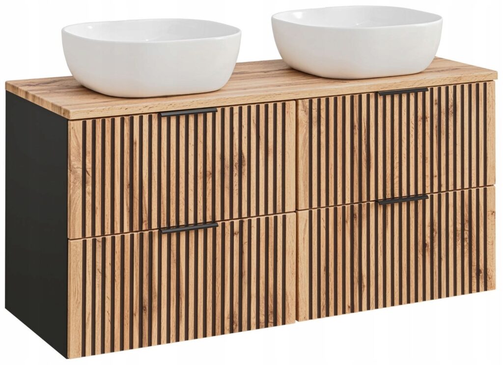 Mebel wykonany jest z połączenia płyty MDF na froncie oraz płyty laminowanej w korpusie, co zapewnia trwałość i stabilność konstrukcji. System cichego domykania zwiększa komfort codziennego użytkowania. Szafka przeznaczona jest do montażu wiszącego, co nadaje zabudowie lekkości i ułatwia utrzymanie porządku w łazience. Mebel przeznaczony jest do użytkowania w łazience w warunkach domowych – dla zachowania trwałości i estetyki zaleca się unikanie długotrwałego kontaktu powierzchni z wodą oraz regularne wycieranie wilgoci.