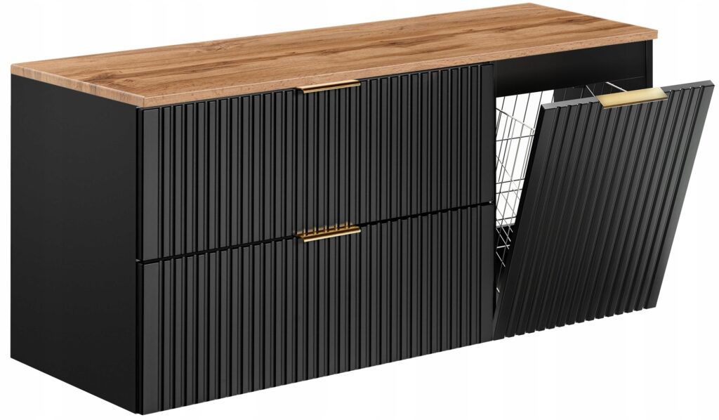 Mebel wykonany jest z połączenia płyty MDF na froncie oraz płyty laminowanej w korpusie, co zapewnia trwałość i stabilność konstrukcji. System cichego domykania zwiększa komfort codziennego użytkowania. Szafka przeznaczona jest do montażu wiszącego, co nadaje zabudowie lekkości i ułatwia utrzymanie porządku w łazience. Mebel przeznaczony jest do użytkowania w łazience w warunkach domowych – dla zachowania trwałości i estetyki zaleca się unikanie długotrwałego kontaktu powierzchni z wodą oraz regularne wycieranie wilgoci.