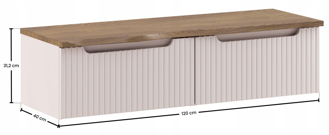 Kaszmirowa szafka łazienkowa NOVA KASZMIR 120 cm ryflowana z blatem bez umywalki