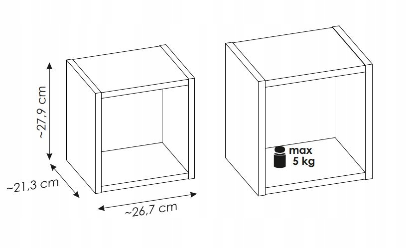 • Szafka łazienkowa NOVA 28×25 cm otwarta – szerokość: 25 cm, wysokość: 28 cm, głębokość: 21,3 cm