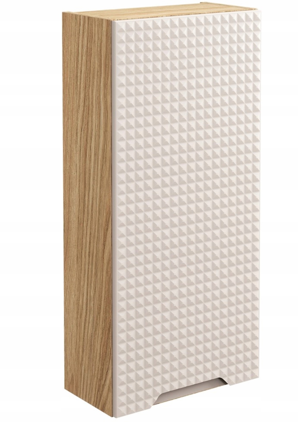 Wzbogać swoją łazienkę o słupek wiszący z kolekcji LUXOR, która wyróżnia się nowoczesnym designem i elegancją. Słupek w beżowym kolorze z matowym wykończeniem frontów w stylu 3D przyciąga uwagę niepowtarzalnym wzorem, który dodaje wnętrzu głębi i charakteru. Wiszący design i możliwość uniwersalnego montażu drzwi (lewo- lub prawostronnie) zapewnia wygodę użytkowania i ergonomiczne zagospodarowanie przestrzeni.