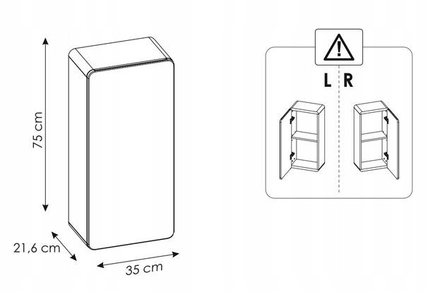 Dzięki uniwersalnemu montażowi drzwi (prawo lub lewostronnemu), szafka doskonale wpisuje się w każde wnętrze, niezależnie od jego układu. Główna półka oferuje przestrzeń do przechowywania niezbędnych akcesoriów łazienkowych, a minimalistyczny wygląd doskonale koresponduje z nowoczesnymi trendami wnętrzarskimi.