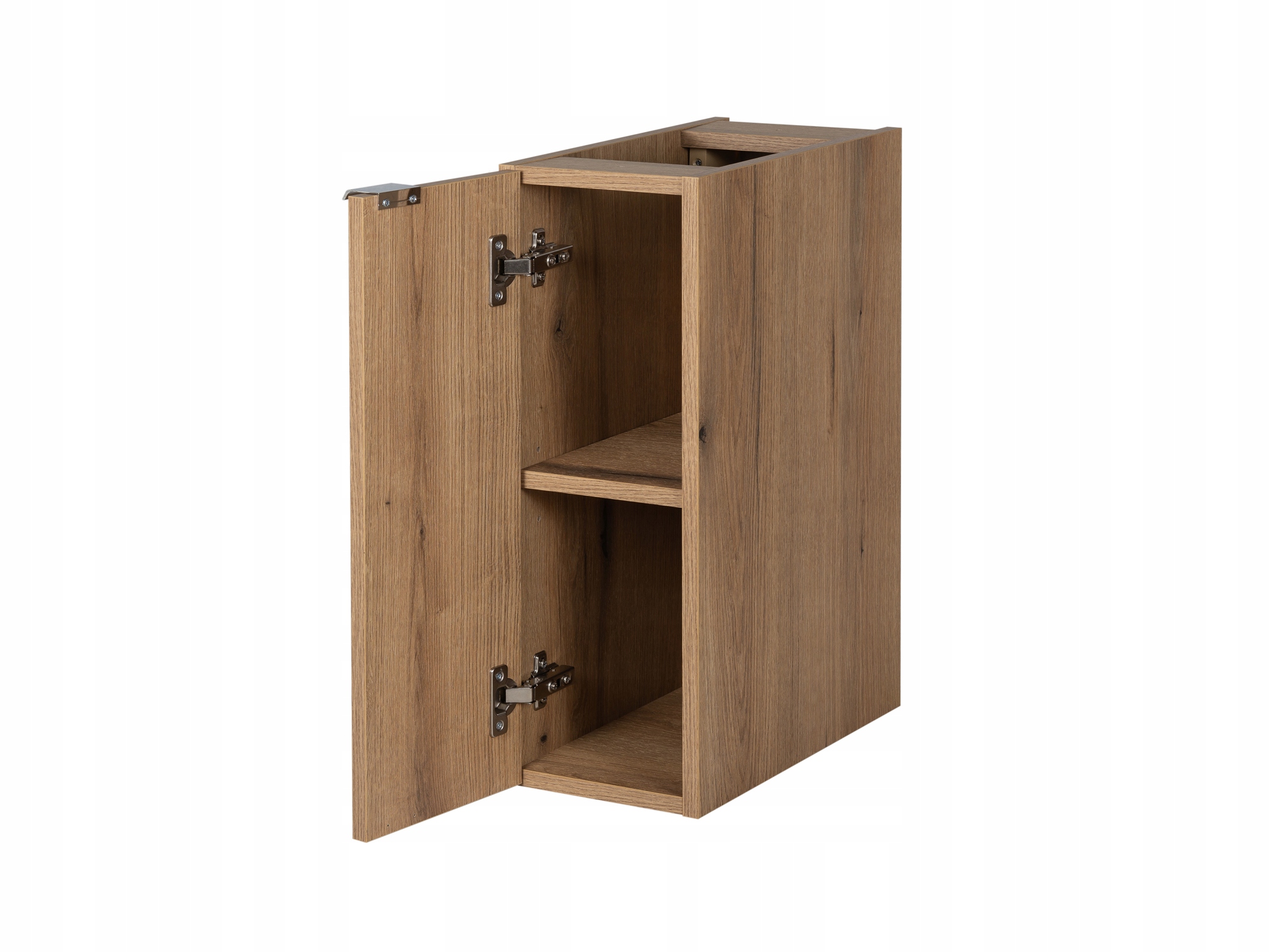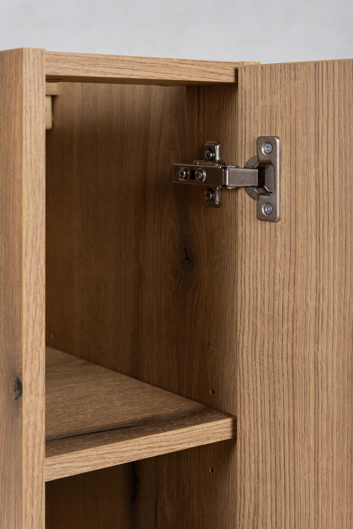 Każdy element kolekcji NOVA OAK został zaprojektowany z myślą o estetyce i funkcjonalności. Chromowane uchwyty krawędziowe dodają elegancji i komfortu, a minimalistyczny wygląd mebli ułatwia dostęp do przechowywanych przedmiotów.
