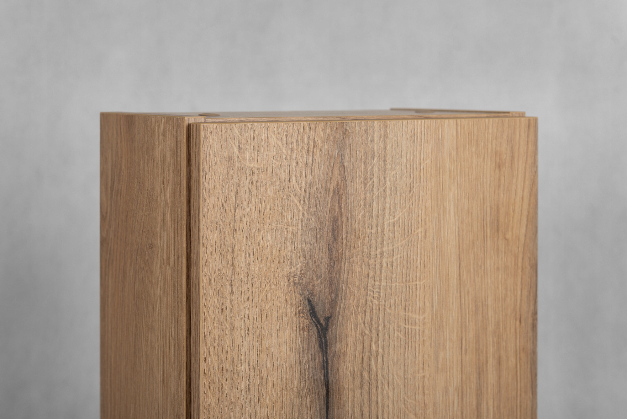 Każdy element kolekcji NOVA OAK, zaprojektowany z myślą o estetyce i funkcjonalności, oferuje unikalne chromowane uchwyty krawędziowe dla wygody użytkowania. Minimalistyczny wygląd mebli ułatwia przechowywanie i utrzymanie porządku.