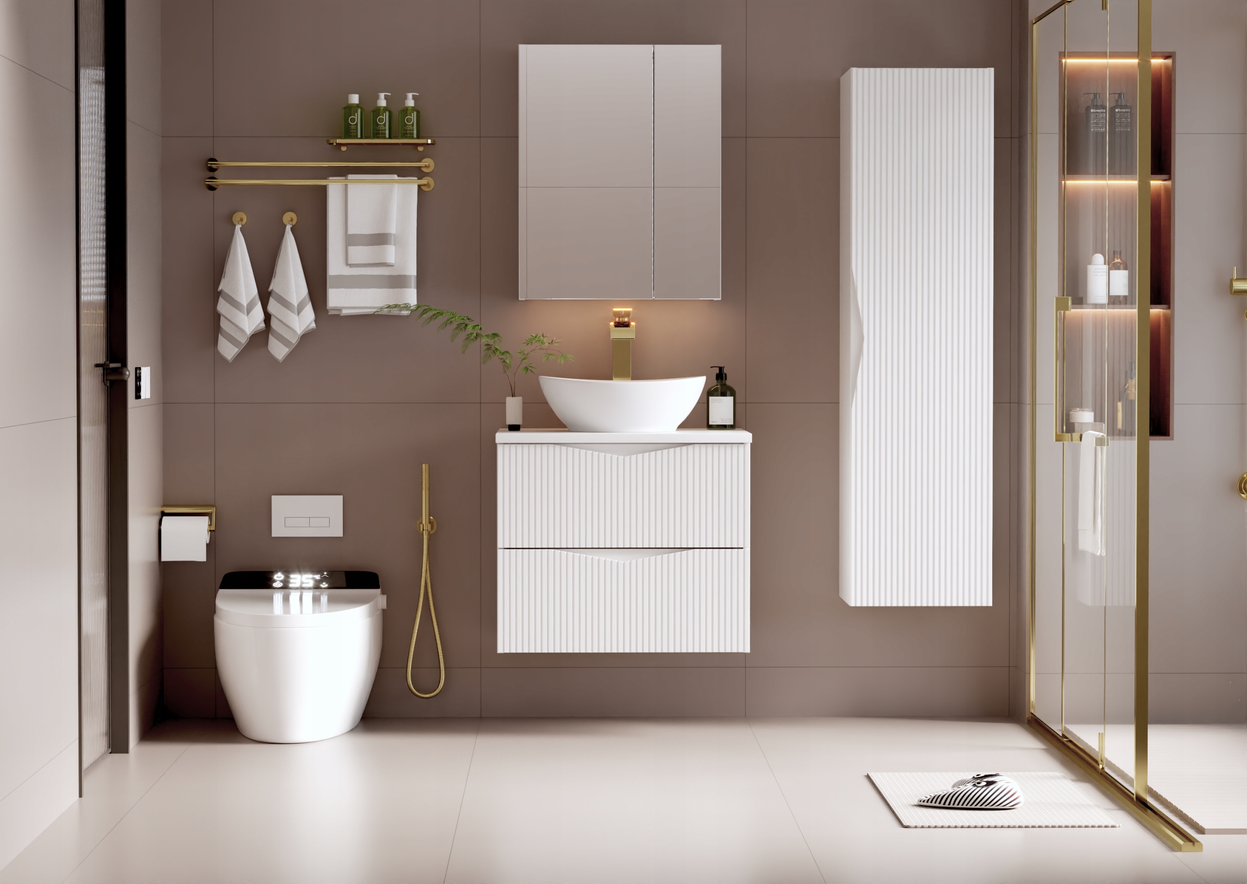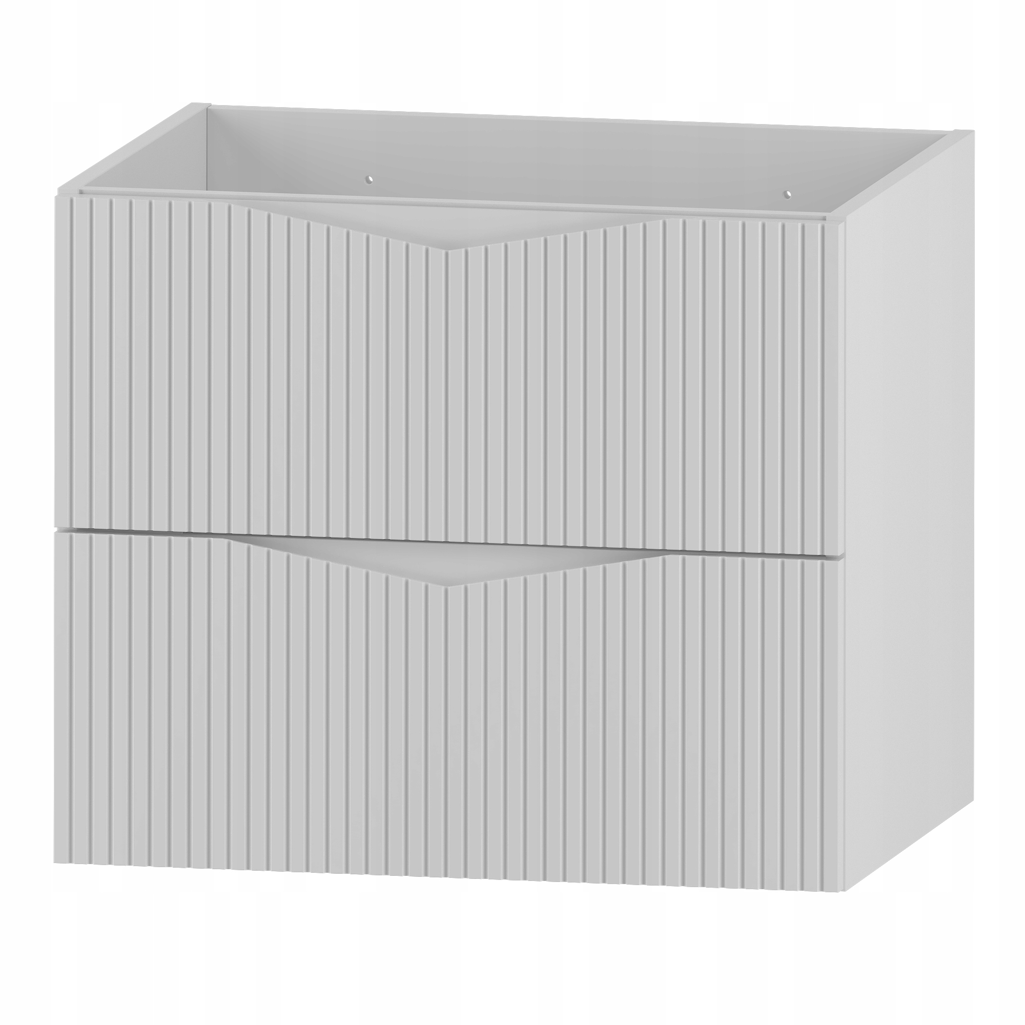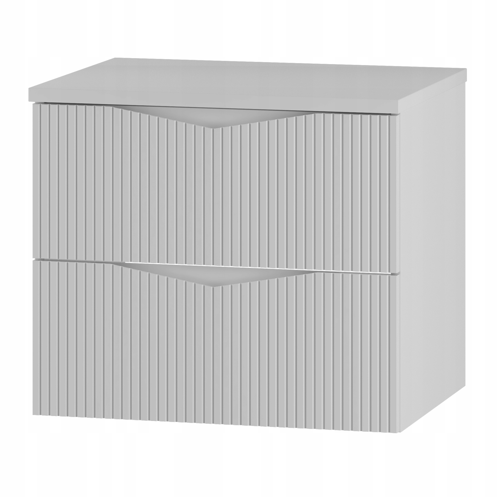 Szafka łazienkowa CLEO o szerokości 60 cm z dopasowanym blatem MDF o grubości 2,2 cm to eleganckie i funkcjonalne rozwiązanie, które doskonale wpisuje się w nowoczesne aranżacje. Białe ryflowane fronty wykonane z płyty MDF o grubości 18 mm nadają bryle lekkości i elegancji, a frezowany uchwyt podkreśla minimalistyczny charakter kolekcji. Dwie pojemne szuflady wyposażone w prowadnice dolnego montażu marki Hafele oraz system cichego domykania zapewniają komfort codziennego użytkowania i pozwalają na wygodne przechowywanie. Dzięki specjalnemu wycięciu na syfon przestrzeń w szufladach została zaprojektowana tak, aby można ją było w pełni wykorzystać. Korpus z laminowanej płyty wiórowej o grubości 16 mm w połączeniu z blatem w białym macie tworzy spójną i estetyczną całość.